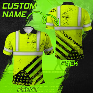 Select options This product has multiple variants. The options may be chosen on the product pageCompany Uniforms, Hi Vis Jobs Products, Hi Vis Polo Jobs Collection, Hi Vis Polo Shirts, Hi Vis Summer Hot, Hot Company Uniforms, Reflective Safety Polo ShirtsHi Vis Polo Shirts Reflective Tapes Green Neon And Black Uniform US Flag Custom Name And Logo Safety Workwear