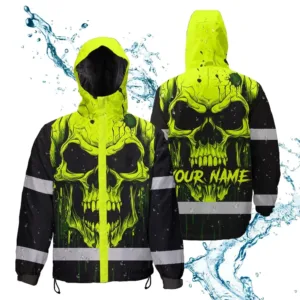 Select options This product has multiple variants. The options may be chosen on the product pageHi Vis Jacket Waterproof And Windproof Reflective Lime Neon Skull Custom Name Safety Workwear