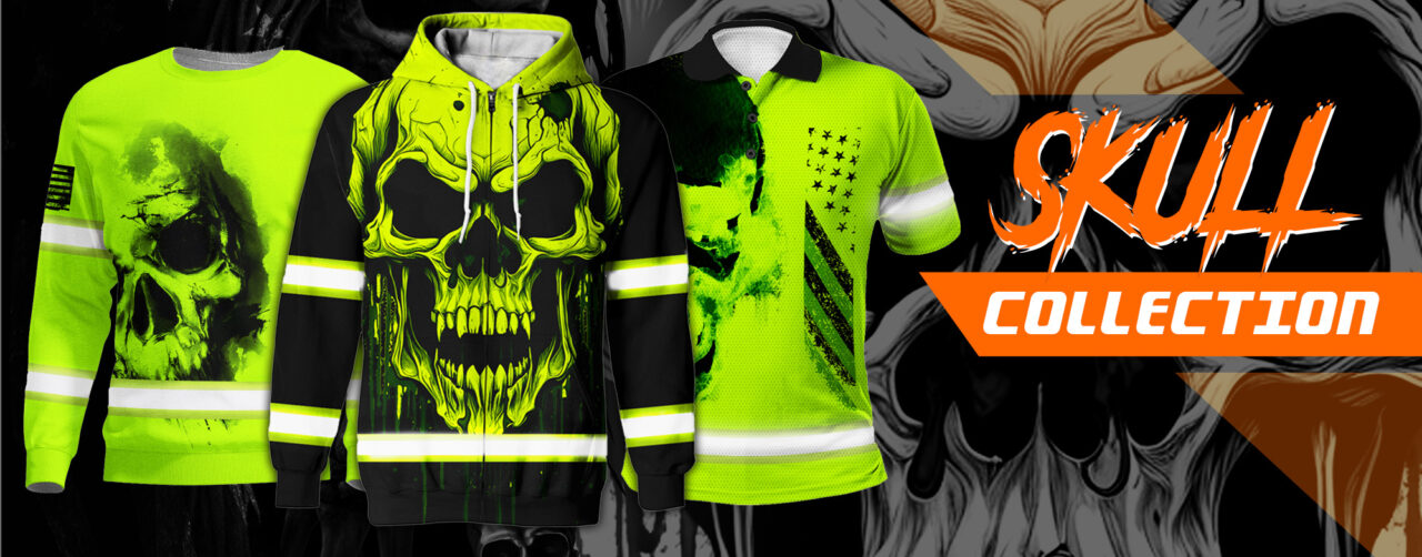 Select options This product has multiple variants. The options may be chosen on the product pageHi Vis Hoodie Skull Collection 2, Hi Vis Hoodies, Hi Vis Shirts, Hi Vis Skull Products, Reflective Safety Hoodie, Reflective Safety ShirtsHi Vis Hoodie Reflective Tapes Green Neon Skull Custom Name Safety Workwear