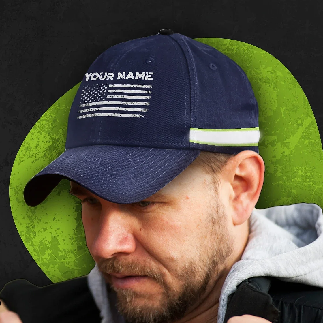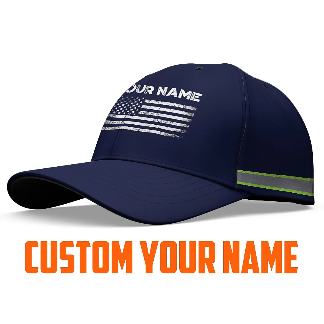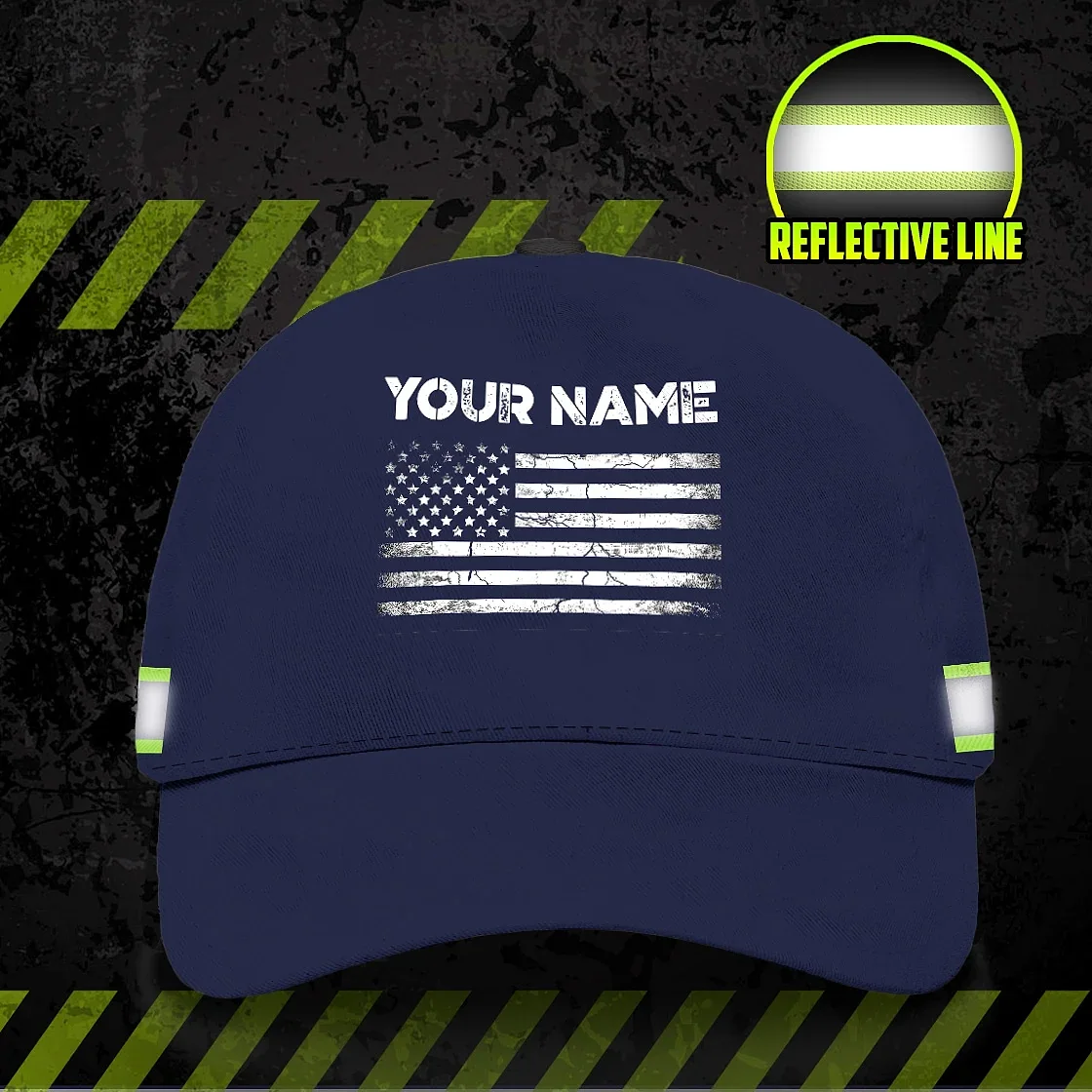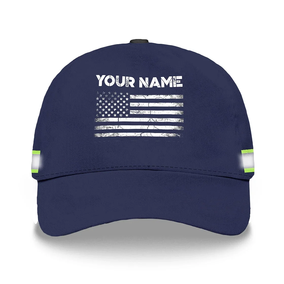 3D Printed Classic Cap Reflective Dark Blue Custom Name Safety Workwear For Workers, Runners, Cyclists, Patriotic