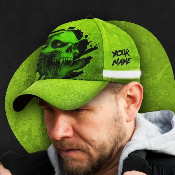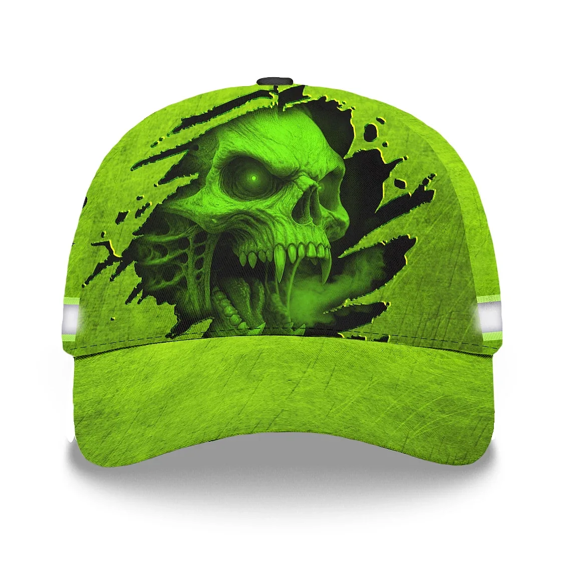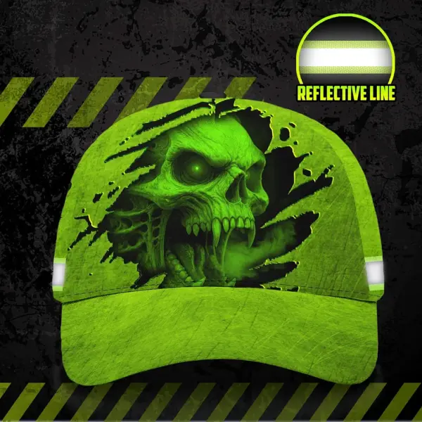 3D Printed Classic Cap Reflective Tapes Green Smoke Neon Skull Custom Name Safety Workwear For Workers, Runners, Cyclists, Patriotic
