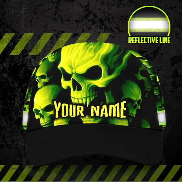 3D Printed Classic Cap Reflective Tapes Lime Neon Skull Custom Name Safety Workwear For Workers, Runners, Cyclists, Patriotic