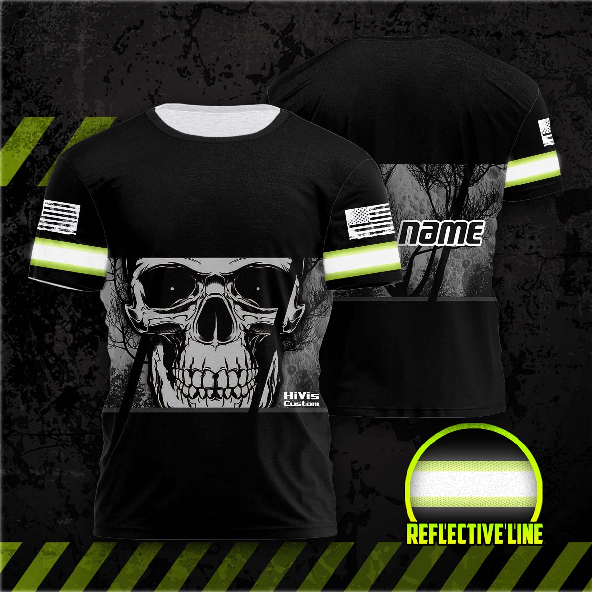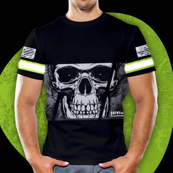 Customized Black Hi Vis Grey Skull Tshirt Reflective Strips Safety Workwear