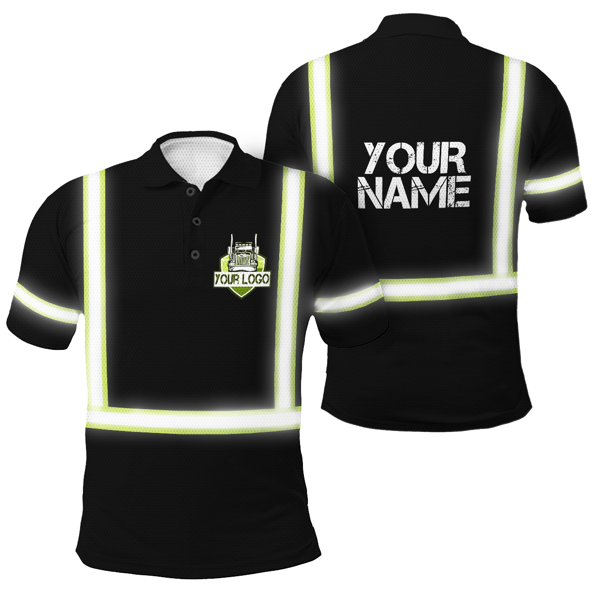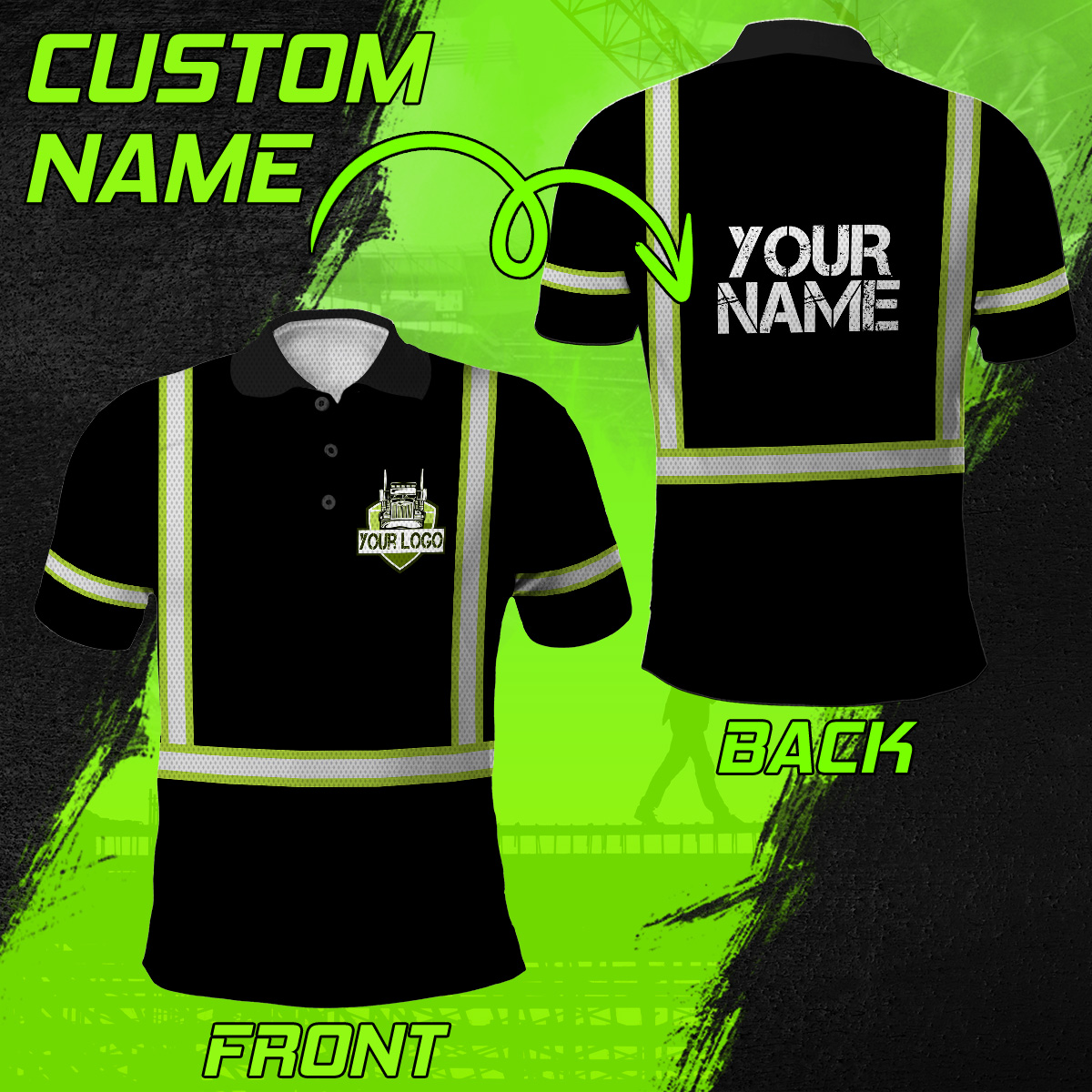 Black Hi Vis Polo Shirt - Custom Name Work Shirt Safety Workwear