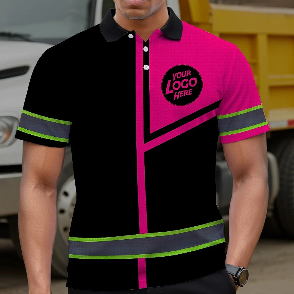 • Custom Company Logo Reflective Hi Vis Polo Shirt – Pink Neon Safety Workwear