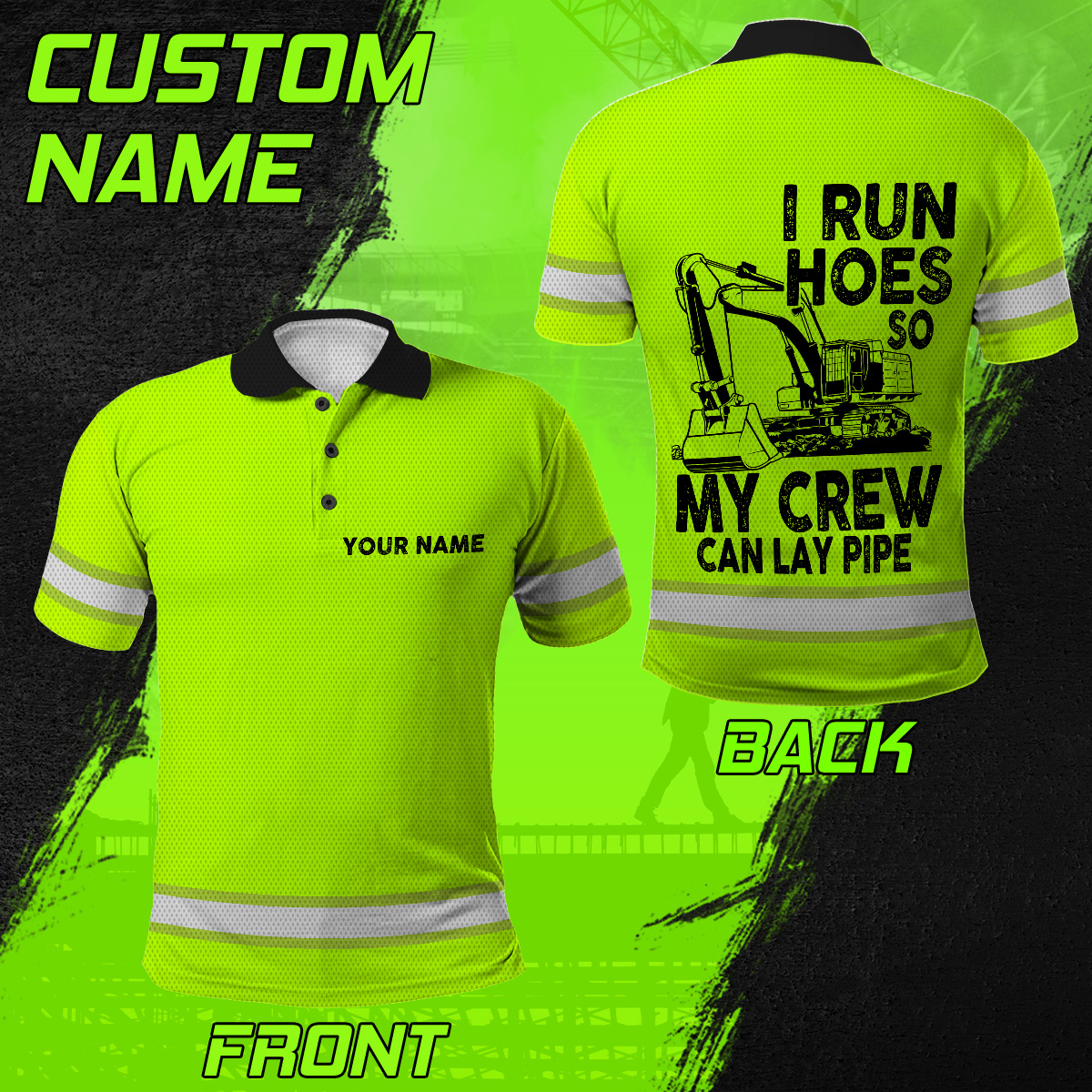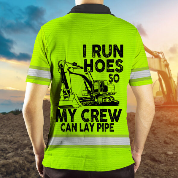 Custom Name Hi Vis Polo Shirts Featuring “I Run Hoes So My Crew Can Lay Pipe” Slogan