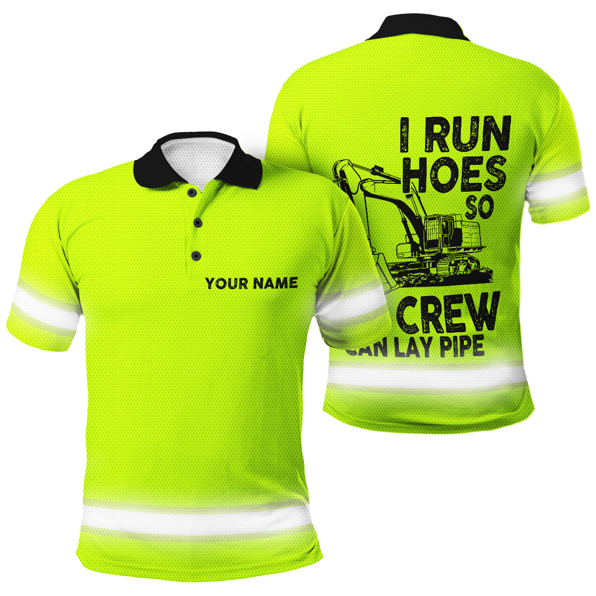 Be the first to review “Custom Name Hi Vis Polo Shirts Featuring “I Run Hoes So My Crew Can Lay Pipe” Slogan”