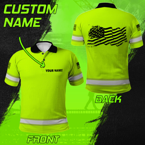 Custom Patriotic Hi Vis Polo - Safety Work Shirt With American Flag Luminous Freedom