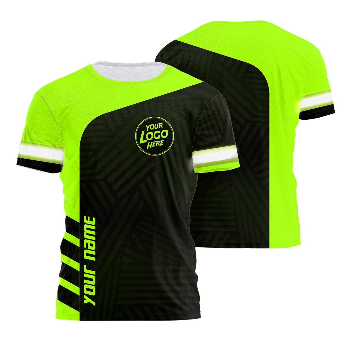 Customized Safety Hi Vis Black Green T shirt Reflective Company Uniforms With Logo & Name