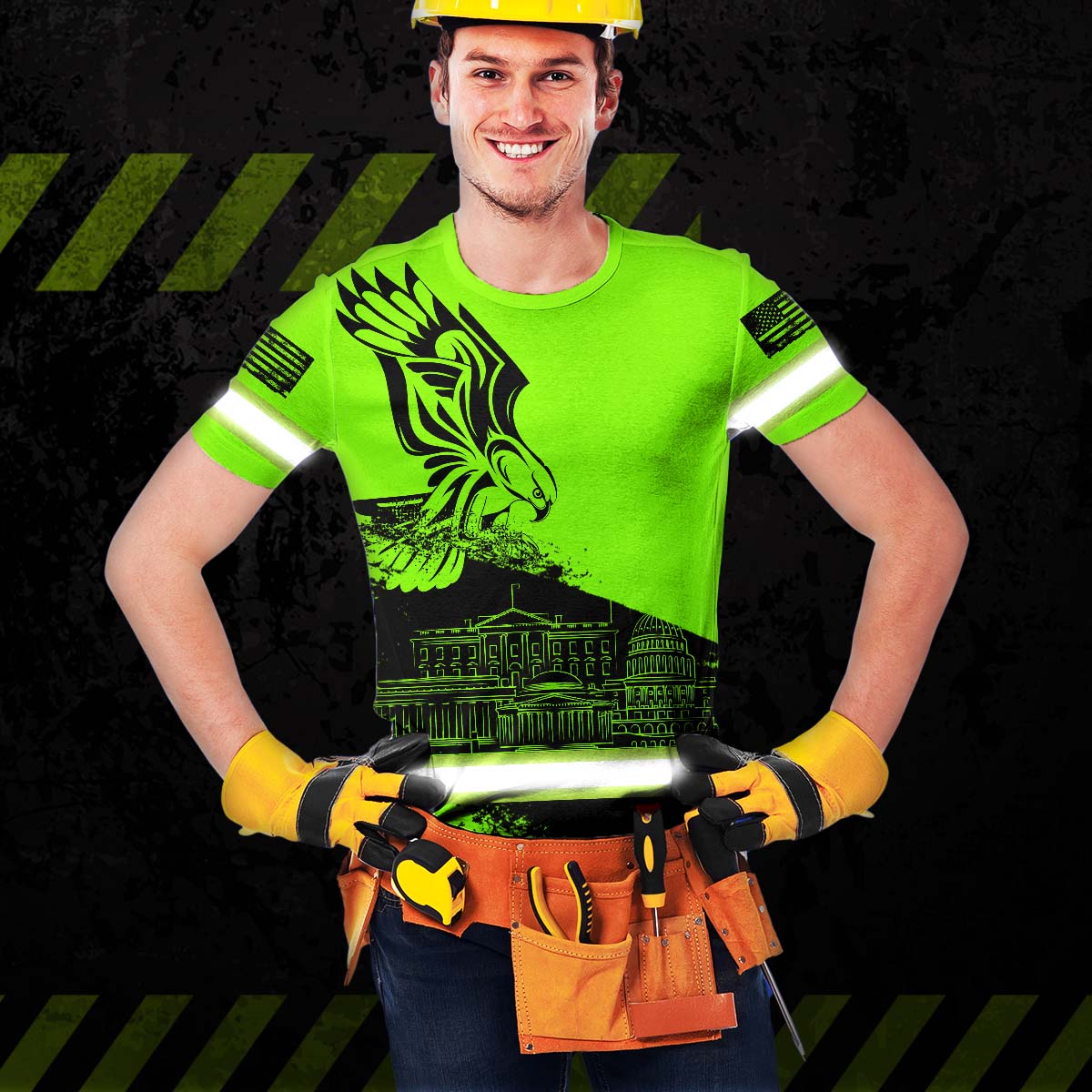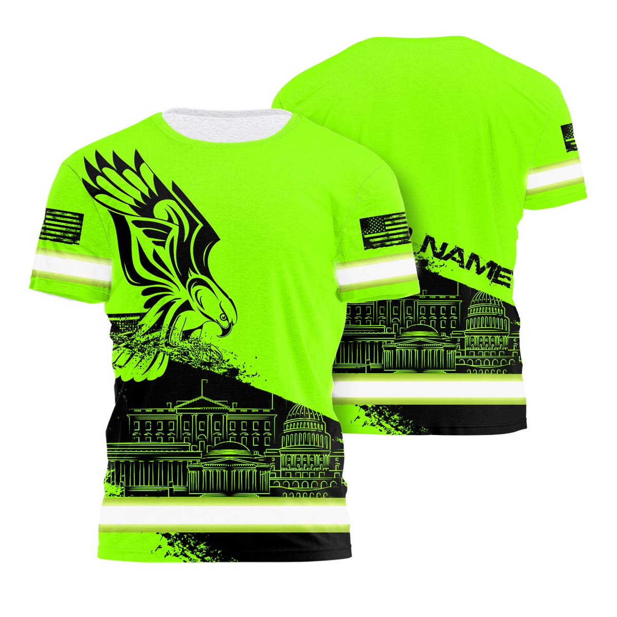 Select options This product has multiple variants. The options may be chosen on the product pageGreen Hi Vis Shirts Reflective Safety Work Tshirt Custom Neon American Flag Design