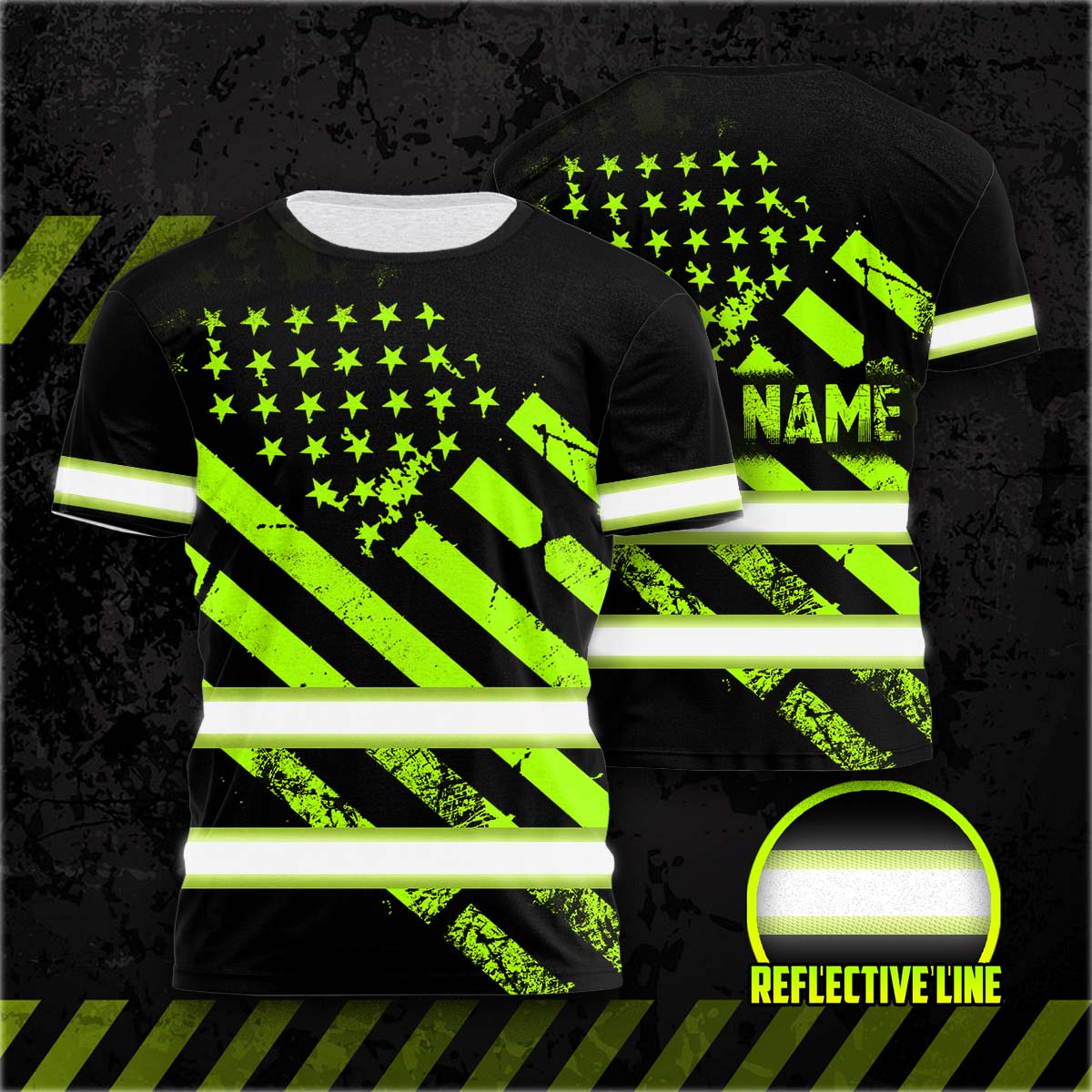 Green Hi Vis Shirts Reflective Safety Work Tshirt Custom Neon American Flag Design