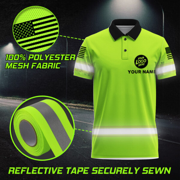 • Personalized Green Neon Hi Vis Reflective Tshirt Uniform Safety Workwear With Logo Name