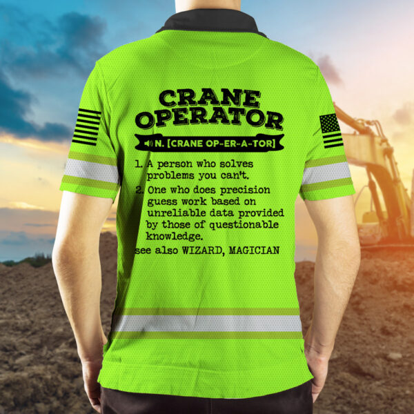 Green Neon Hi Vis Polo With Crane Operator Definition And Custom Name, Logo