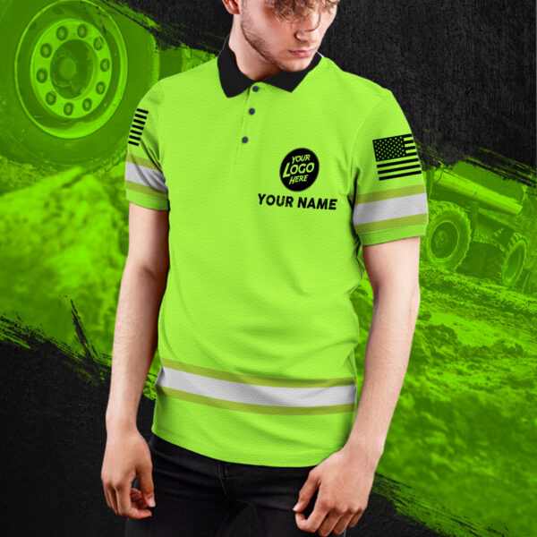 • Green Neon Hi Vis Polo With Railroad Worker Definition And Custom Name, Logo