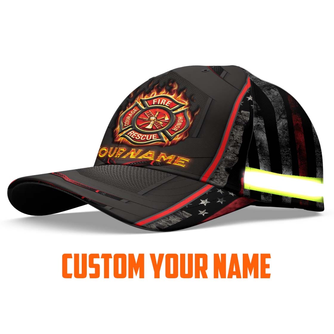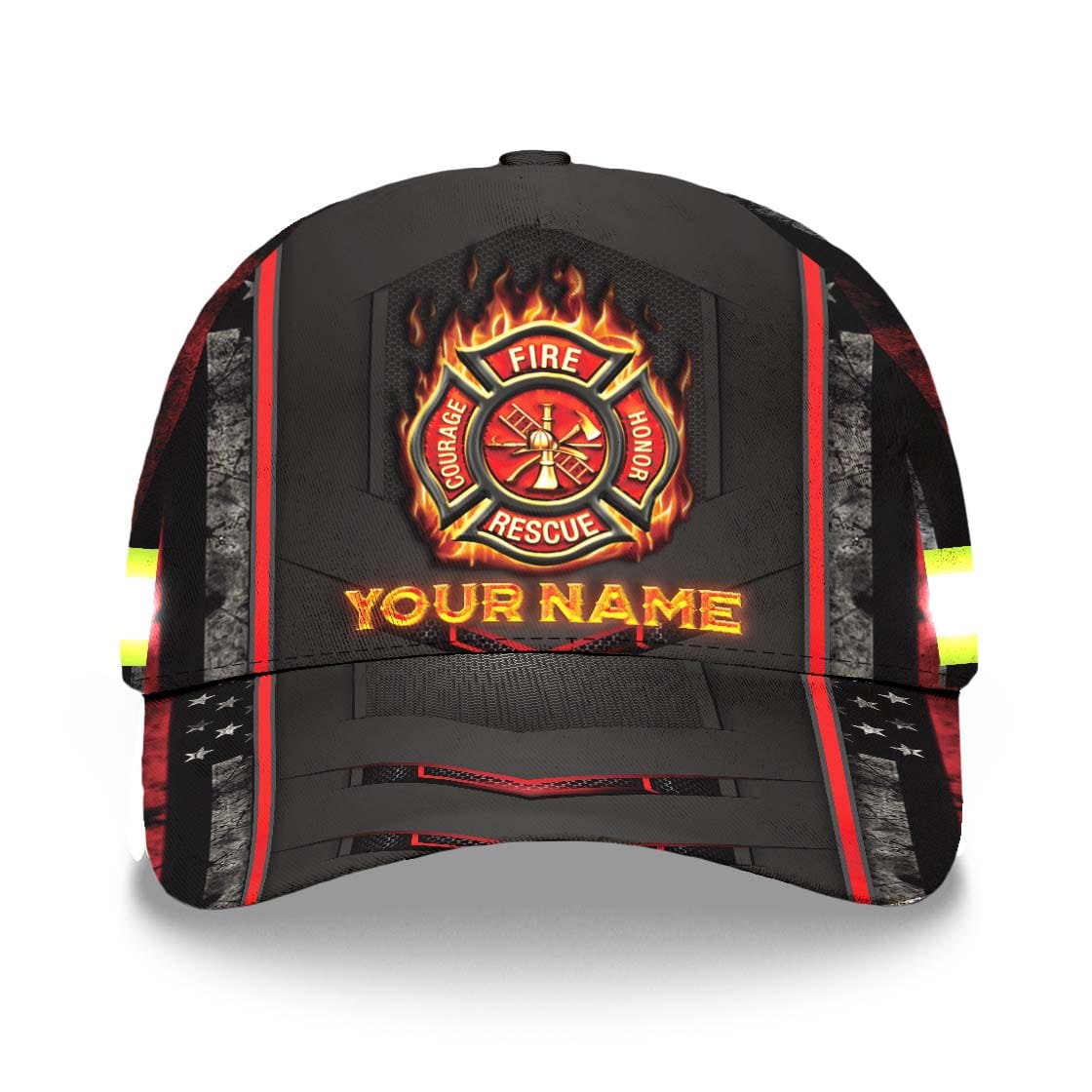 Hi Vis Cap Reflective Firefighter Thin Red Line Custom Name Safety Workwear