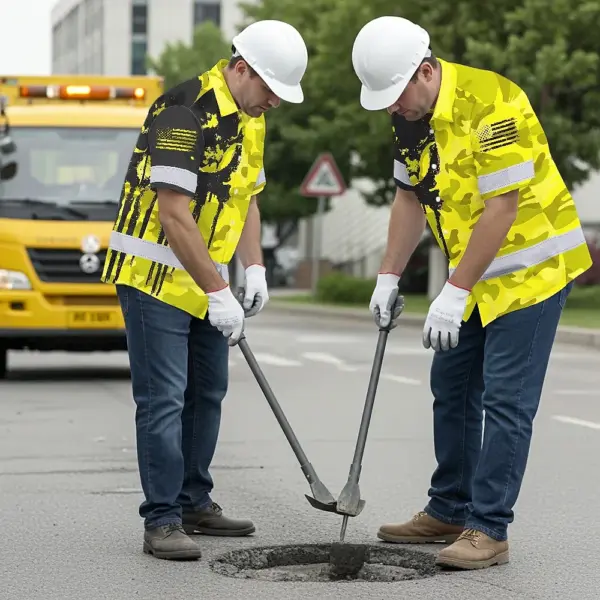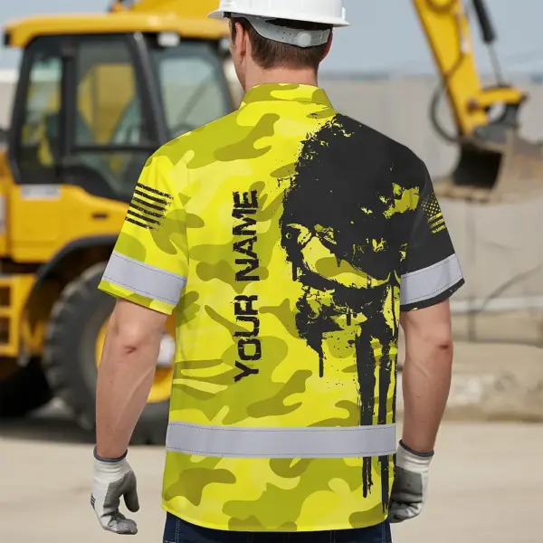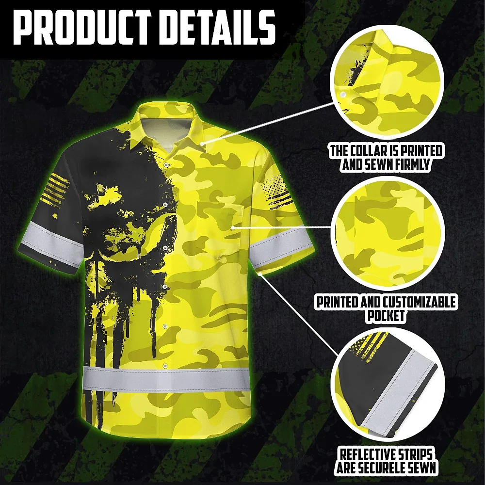 Be the first to review “Hi Vis Hawaiian American Flag Shirt, Yellow Neon Custom Name Reflective Short Sleeve Button-up Safety Shirt for Workers”