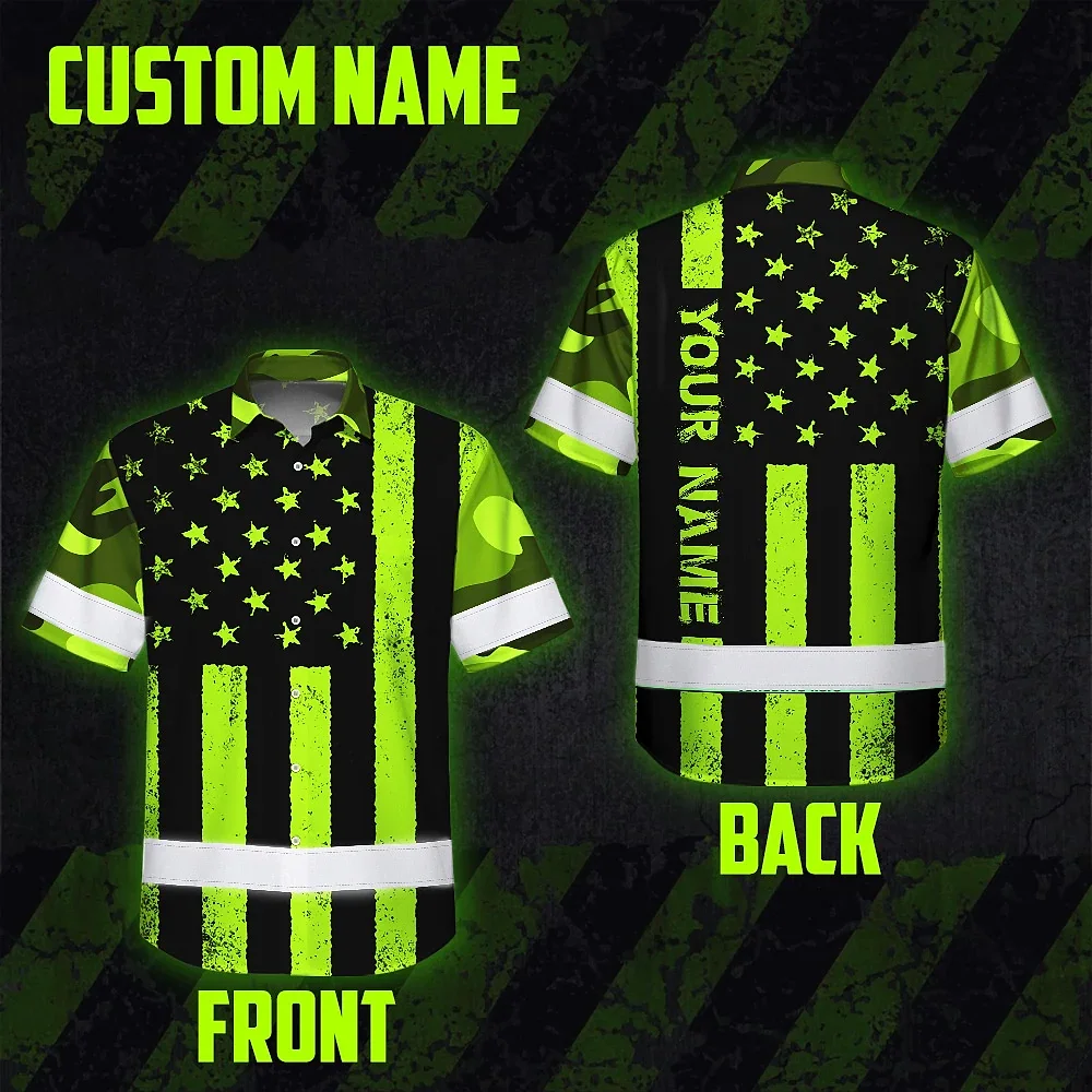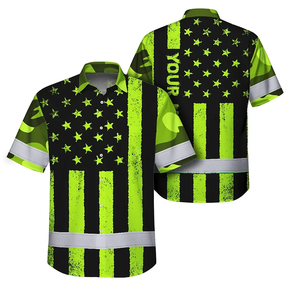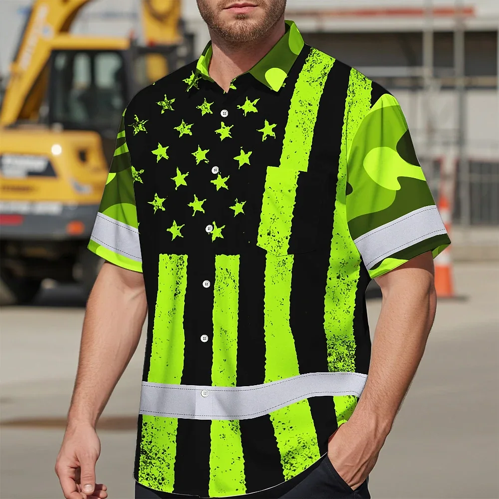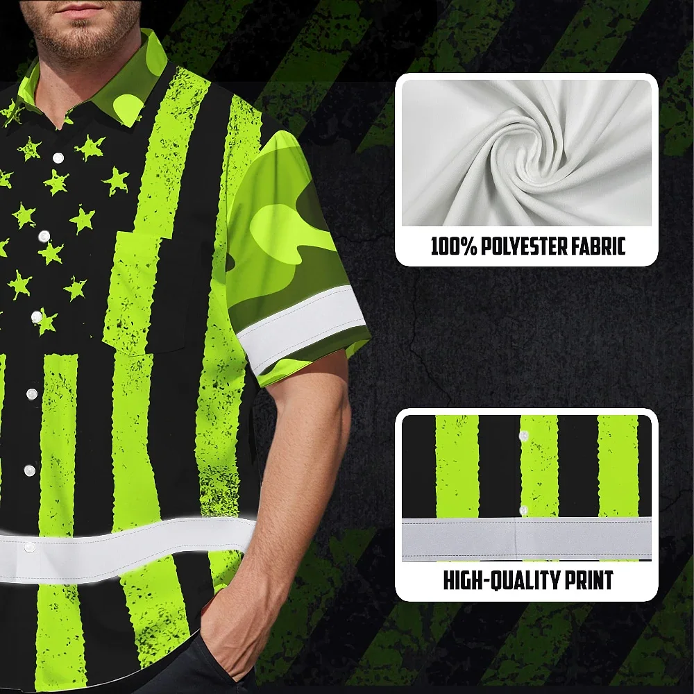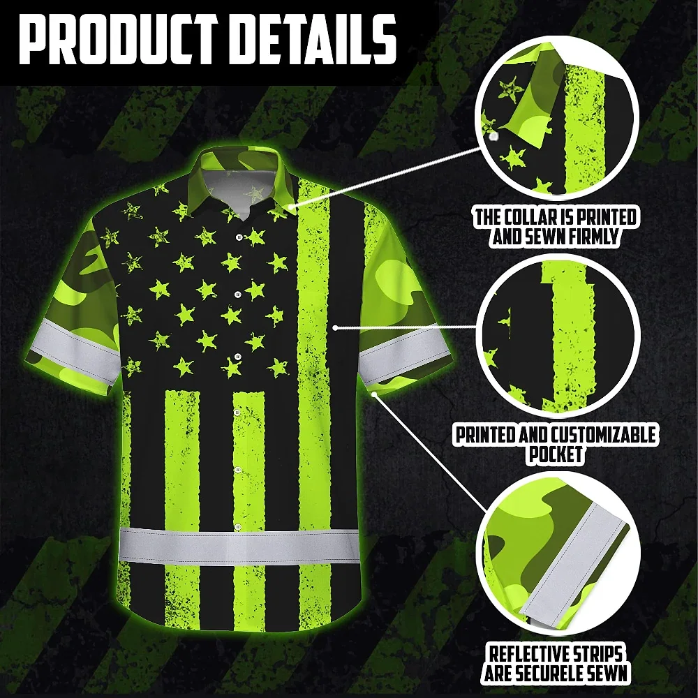 Hi Vis Hawaiian Shirt Reflective Camo Flag Safety Workwear