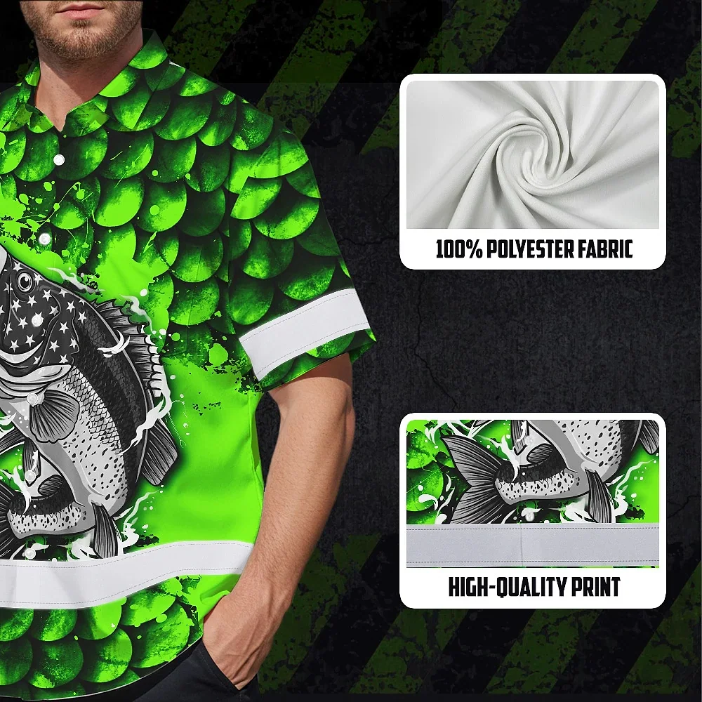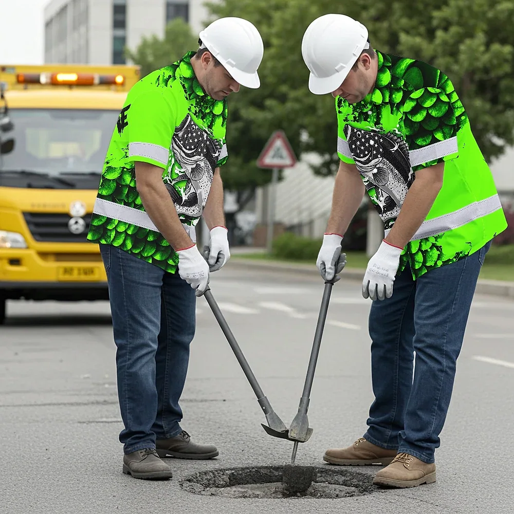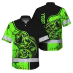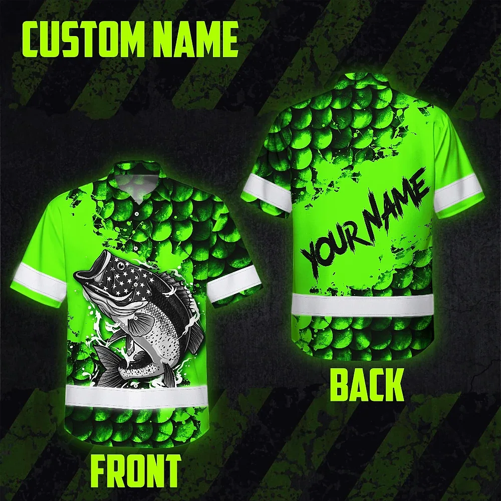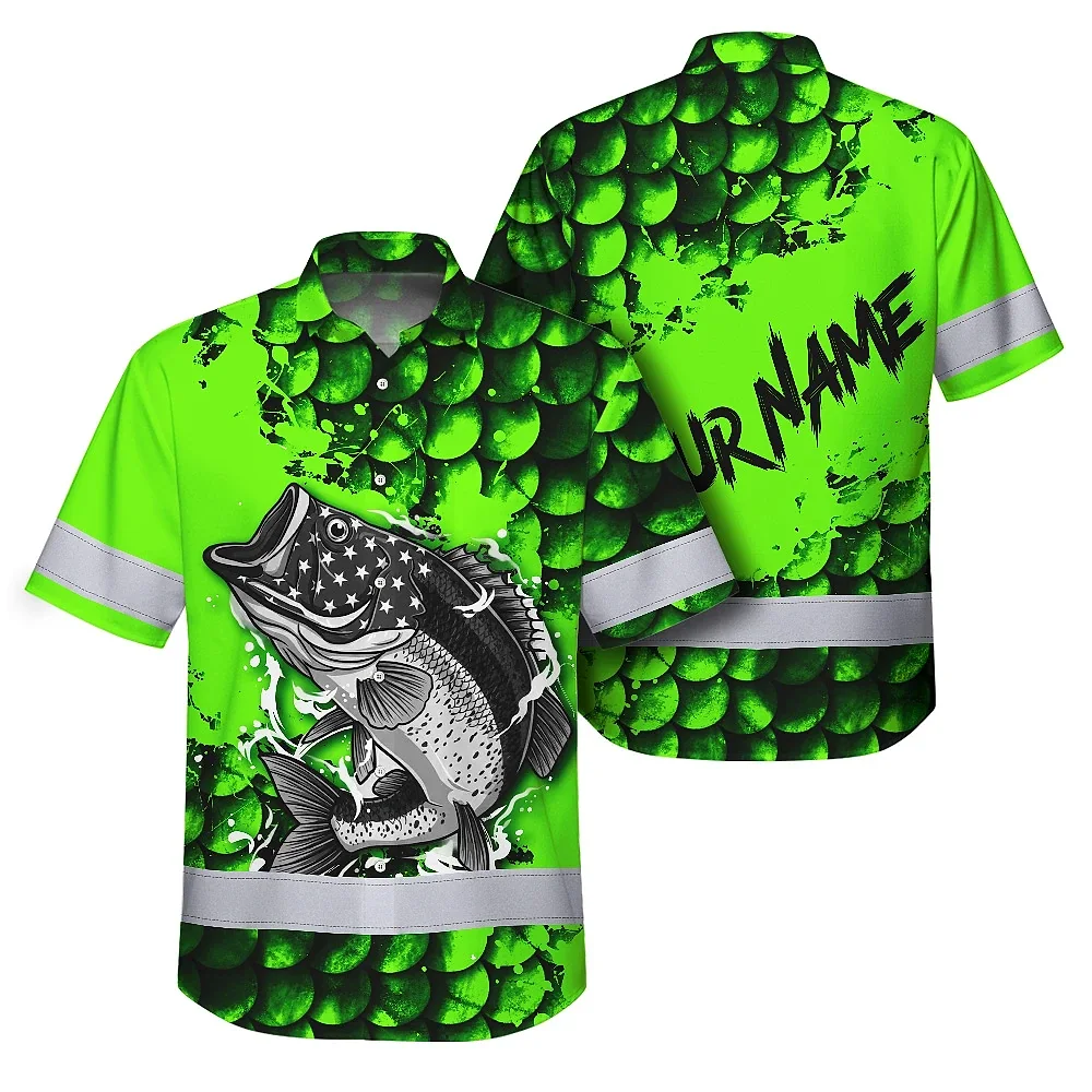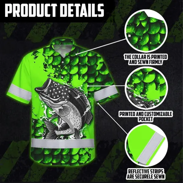 Hi Vis Hawaiian Shirt Reflective Fishing Green Neon Custom Name Safety Workwear For Fishing Lovers Workers, Runners, Cyclists, Trucker, Operator, Patriotic