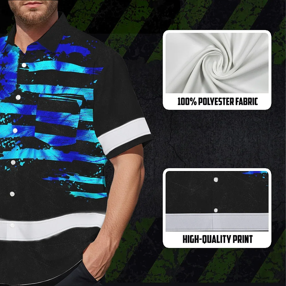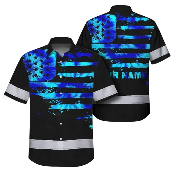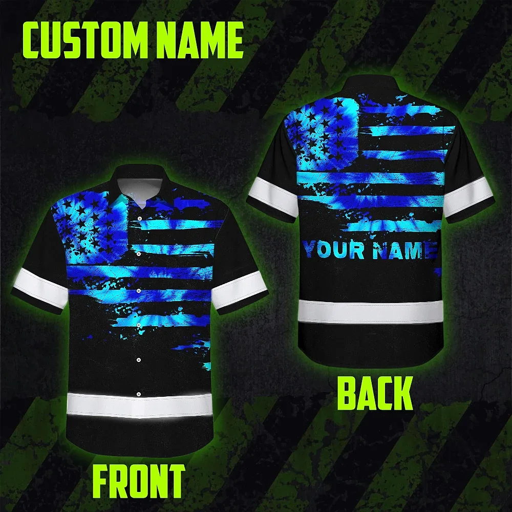 Hi Vis Hawaiian Shirt Reflective Tapes Blue Tie Dye US Flag Custom Name