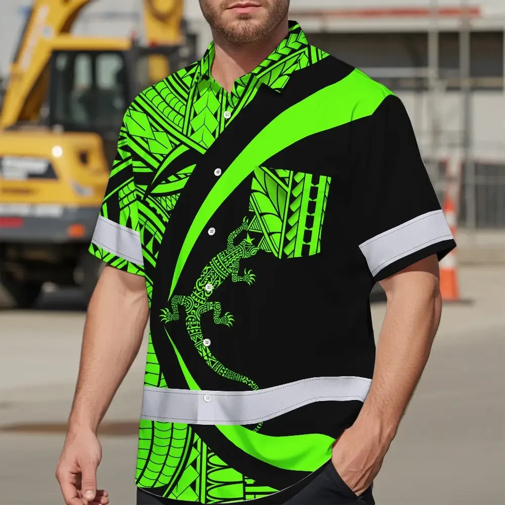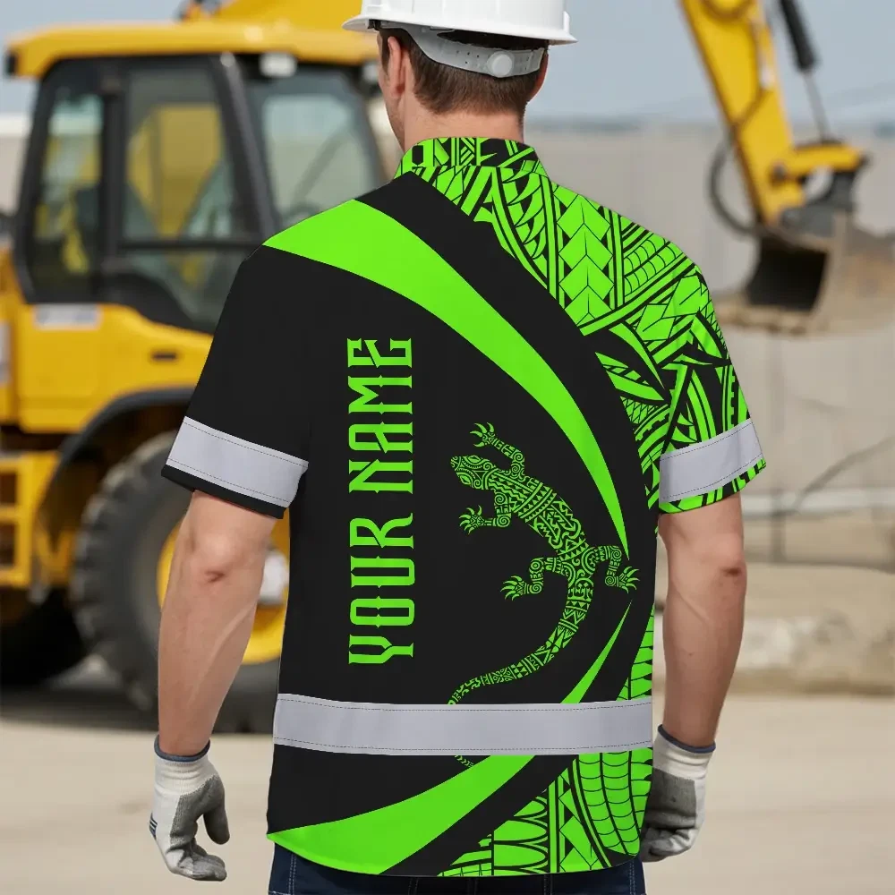Hi Vis Hawaiian Shirt Reflective Tapes Green Neon Hawaii Custom Name