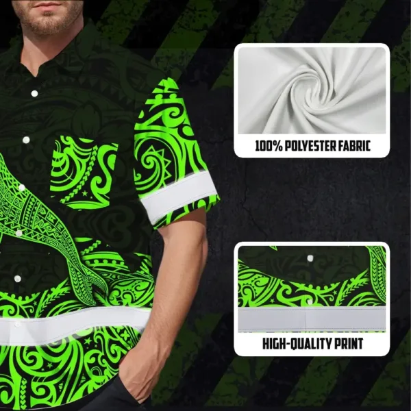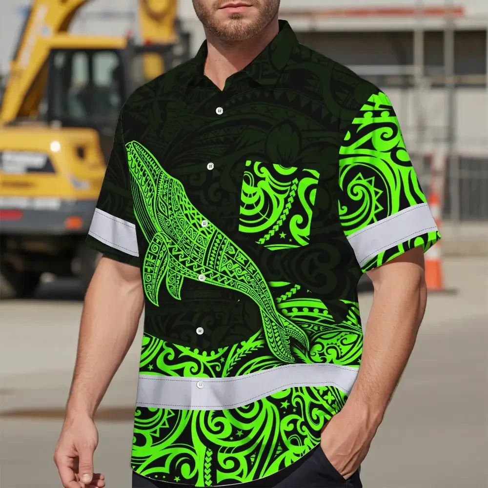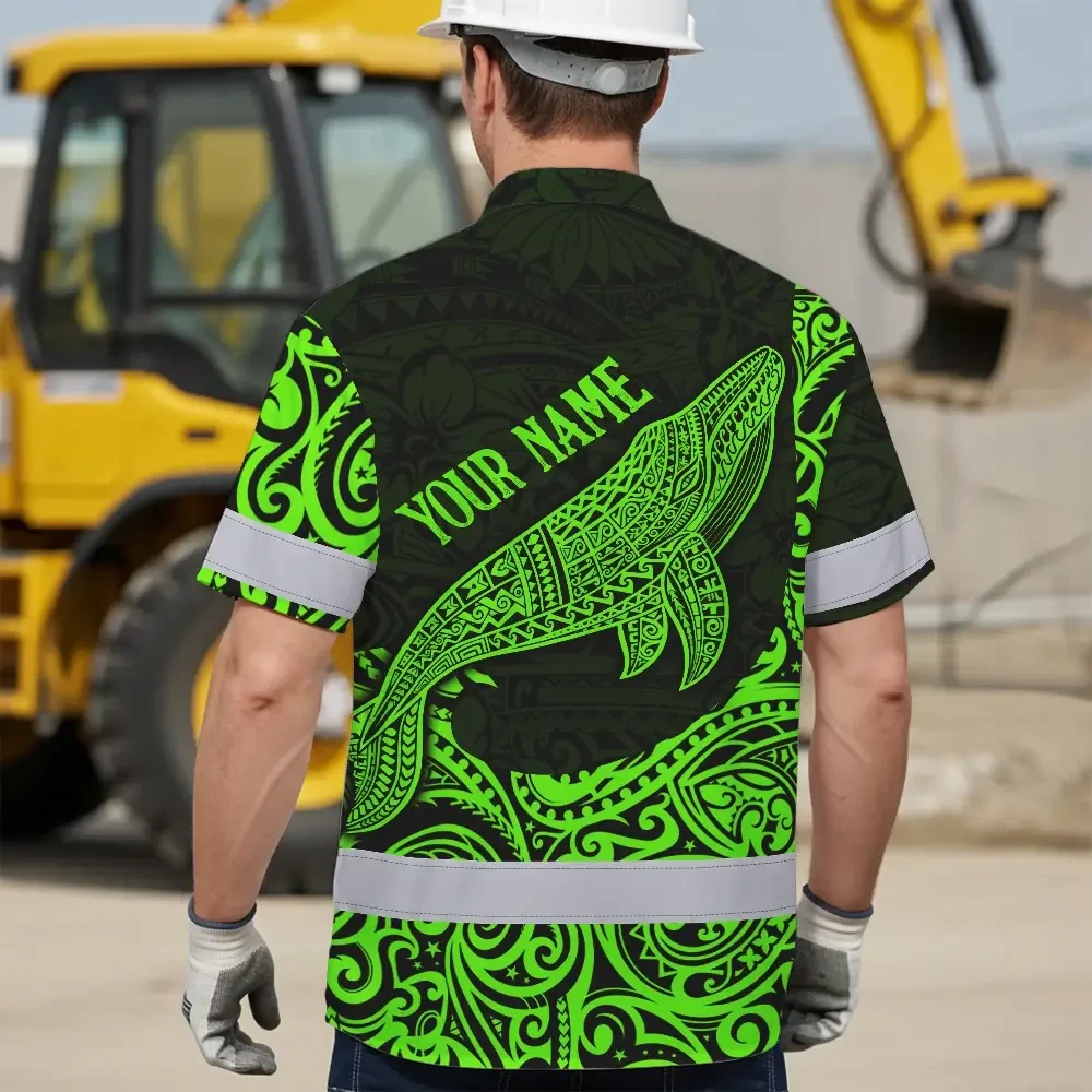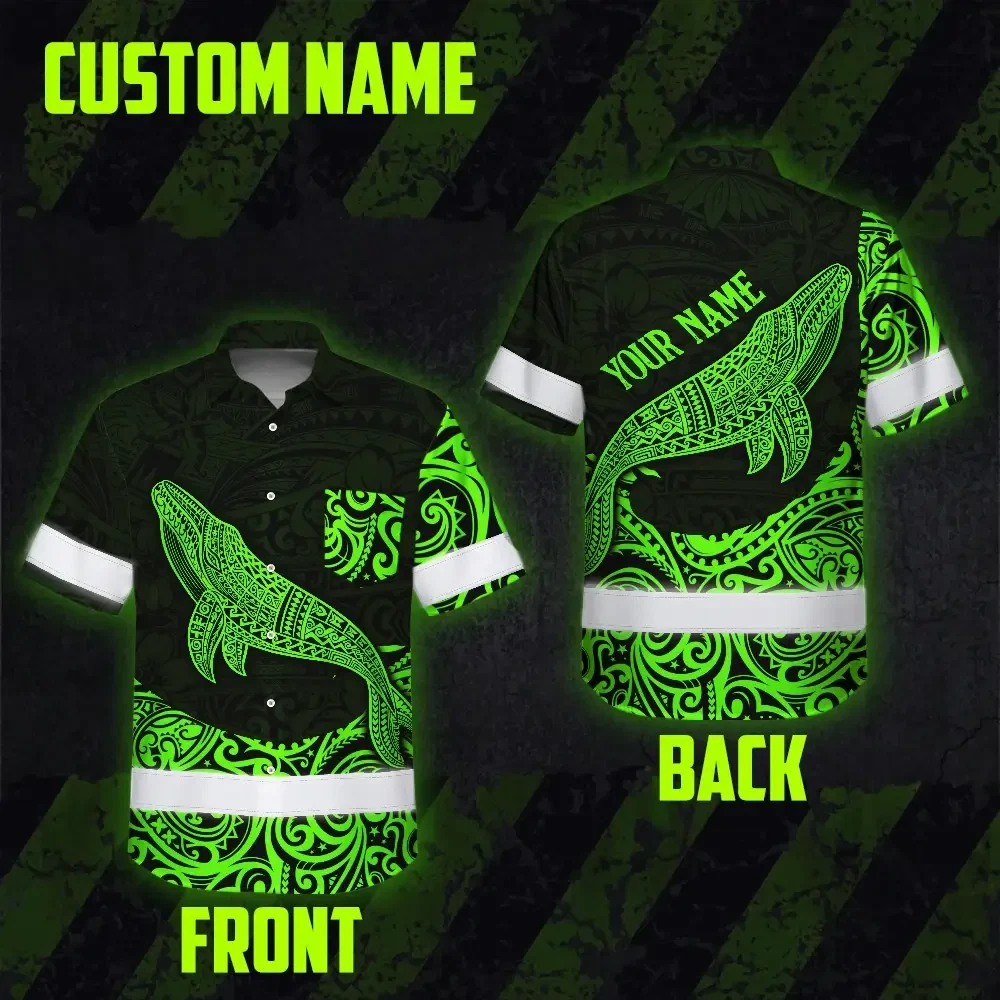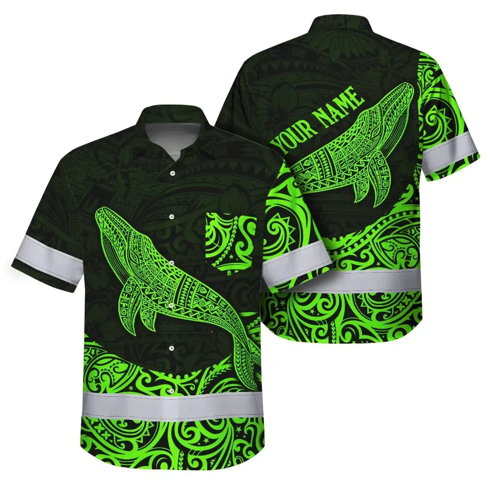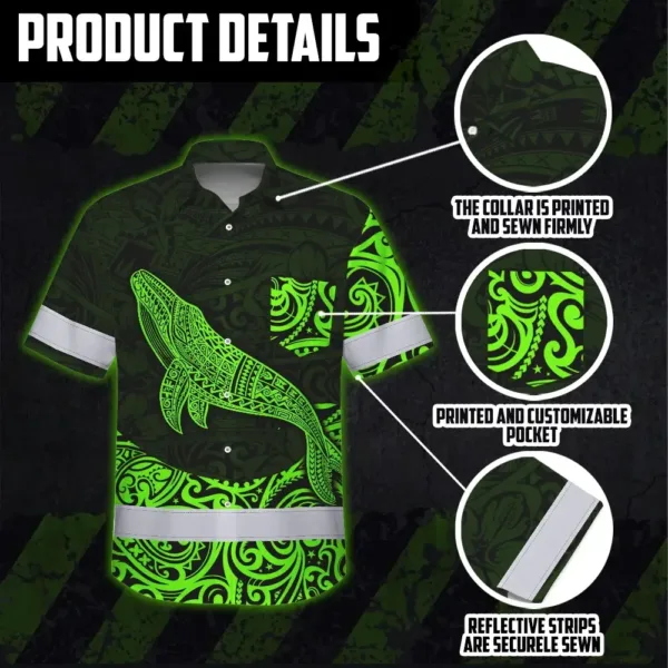 Hi Vis Hawaiian Shirt Reflective Tapes Green Neon Hawaii Whale Custom Name