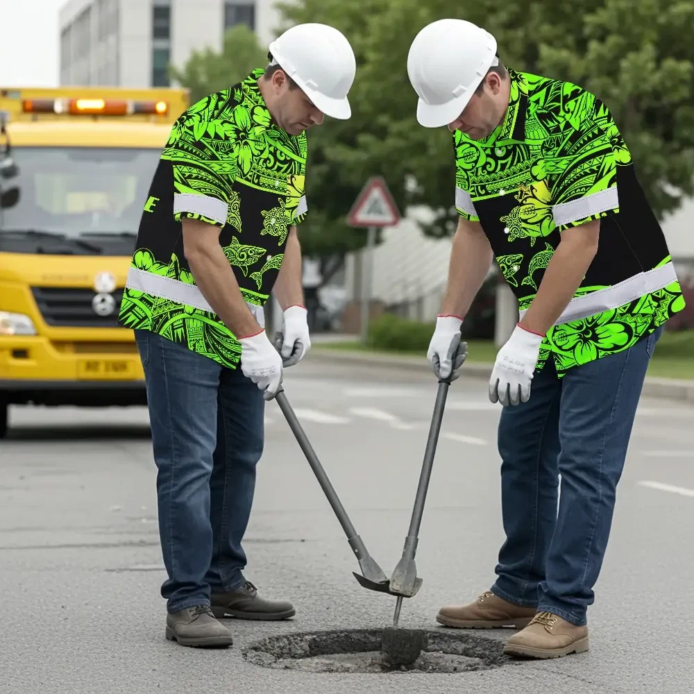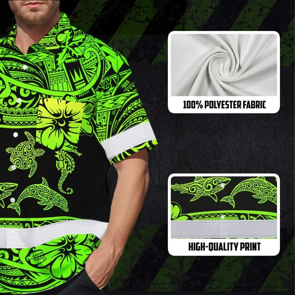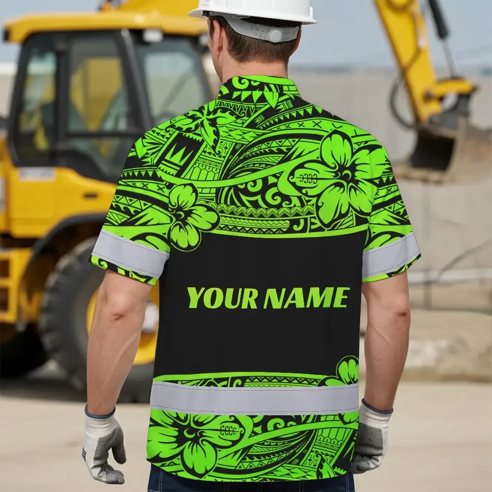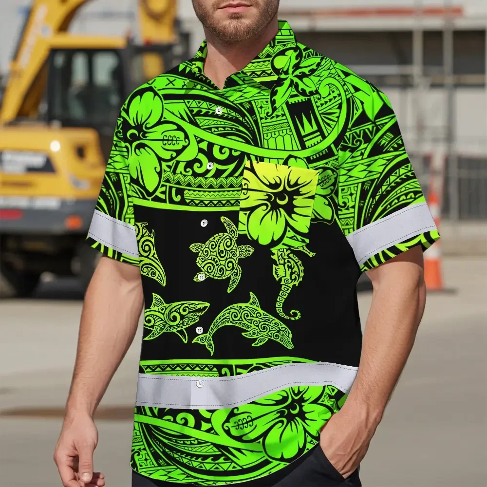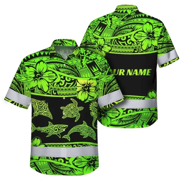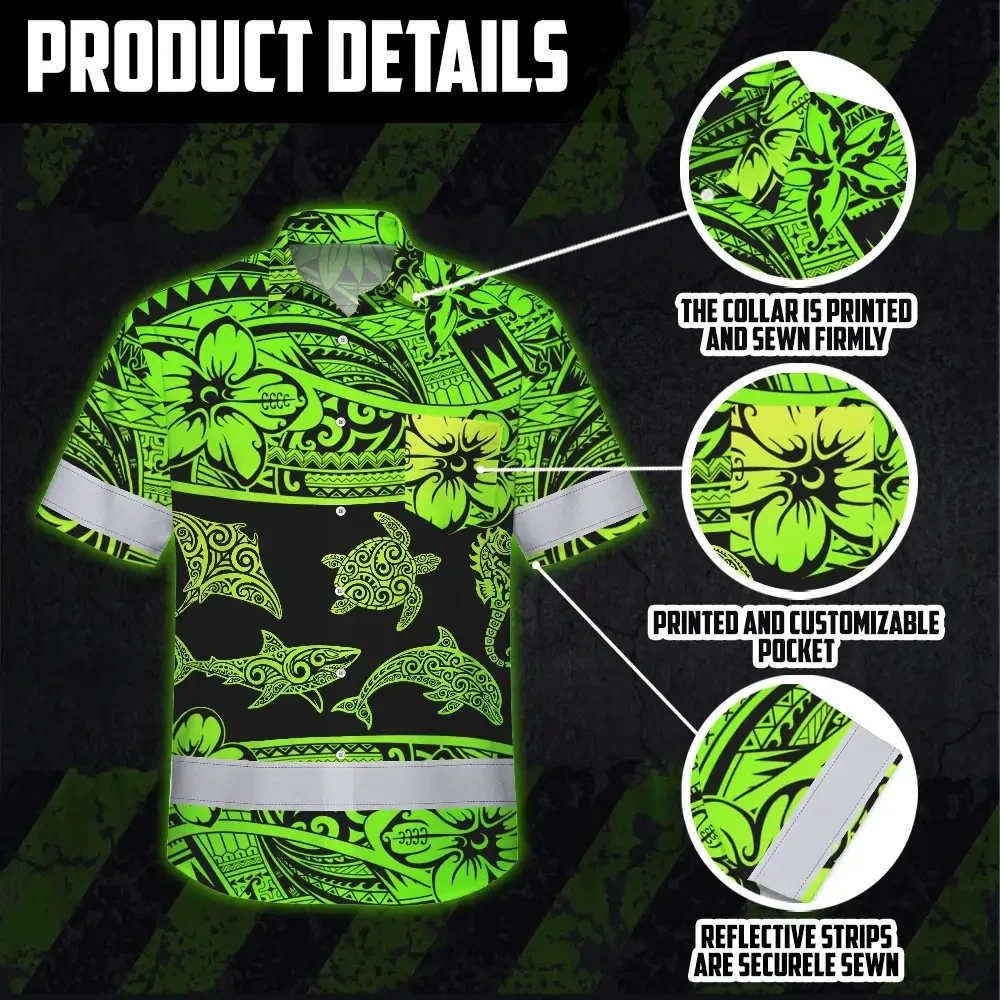 Hi Vis Hawaiian Shirt Reflective Tapes Green Neon Hawaiian Polynesian Tribal