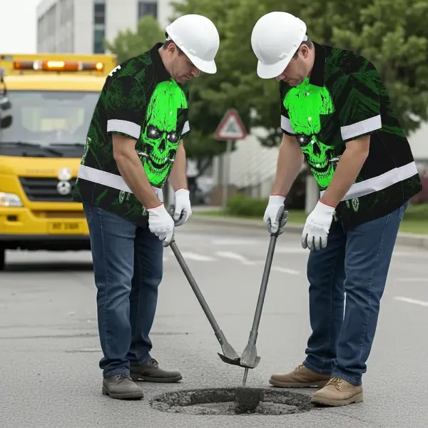 Be the first to review “Hi Vis Hawaiian Shirt Reflective Tapes Green Neon Skull Chain Custom Name Safety Workwear For Workers, Truckers, Operators”