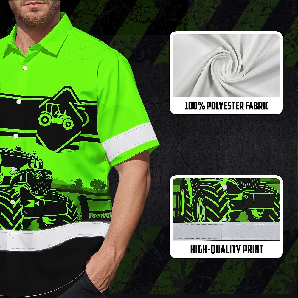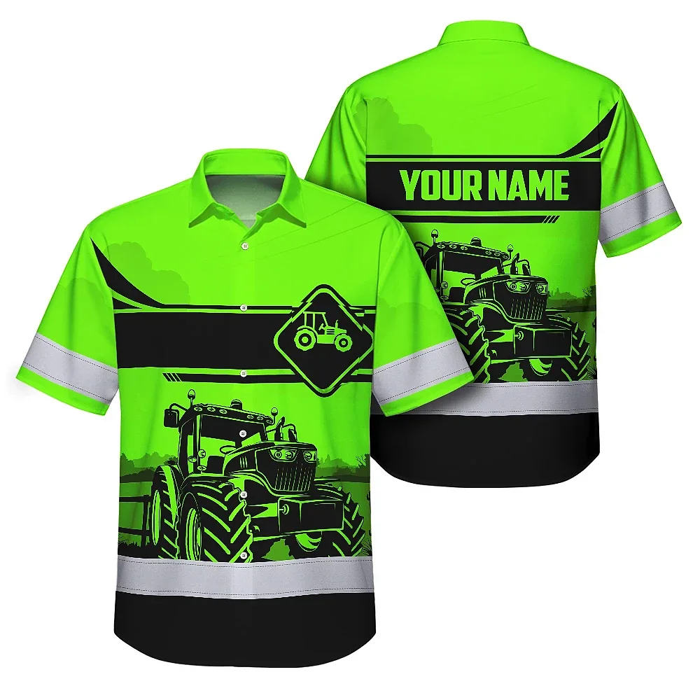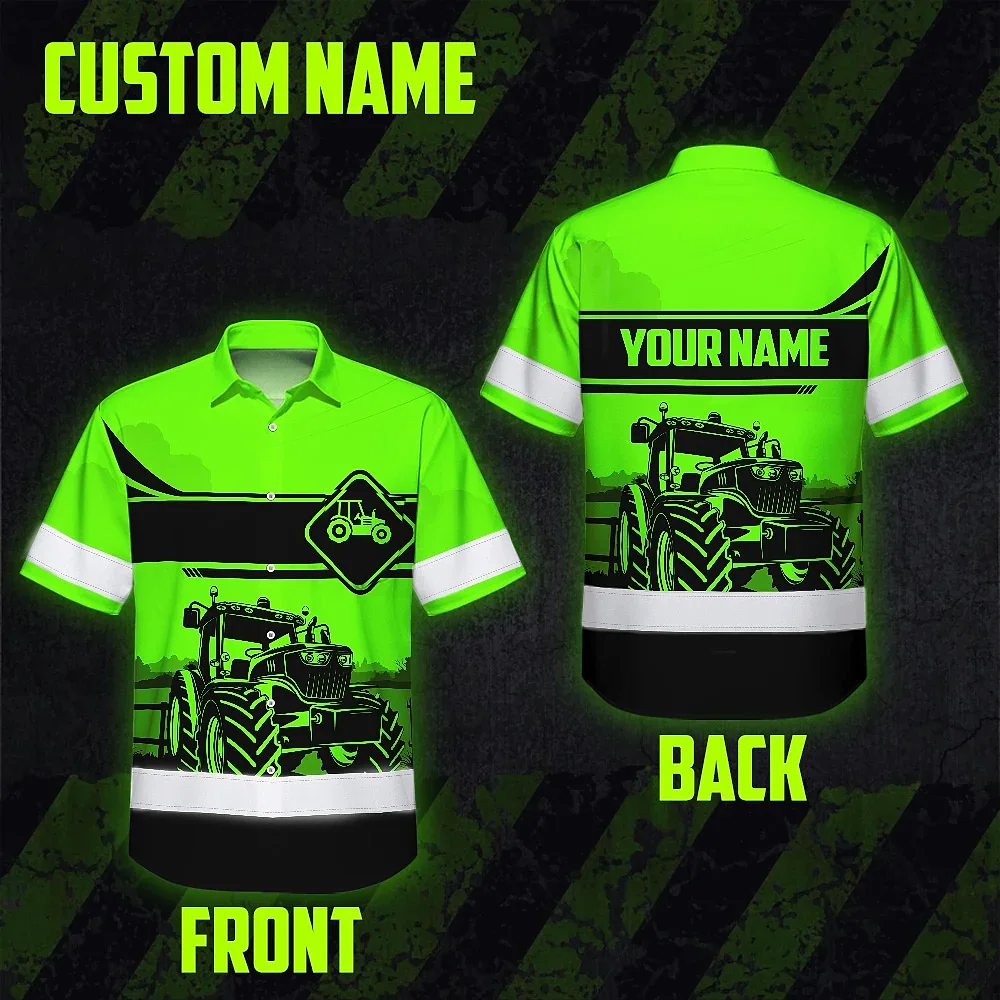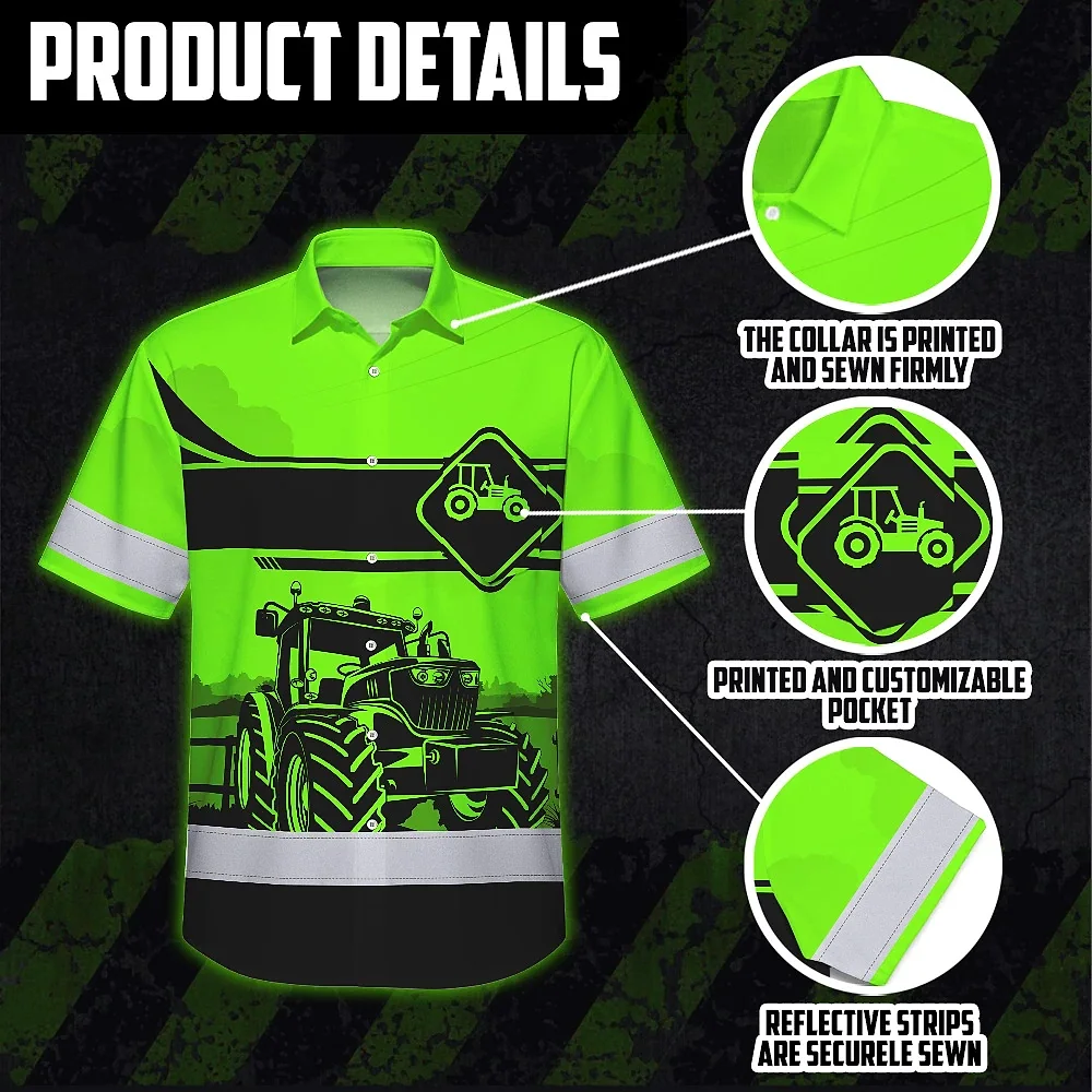Hi Vis Hawaiian Shirt Reflective Tapes Green Neon Tractor On The Farm Custom Name