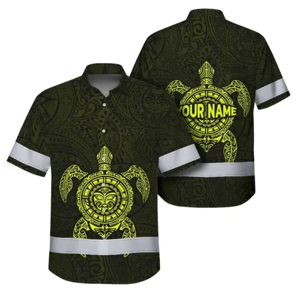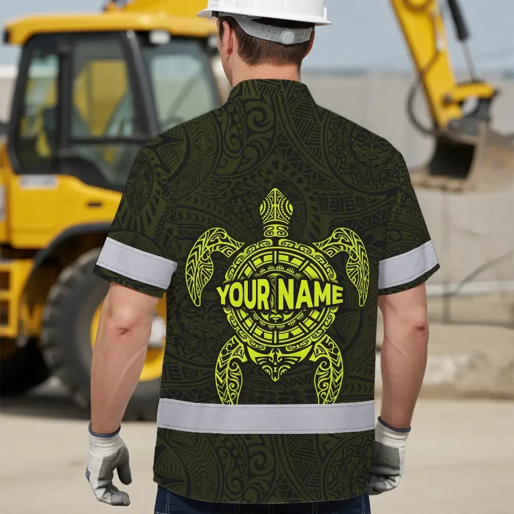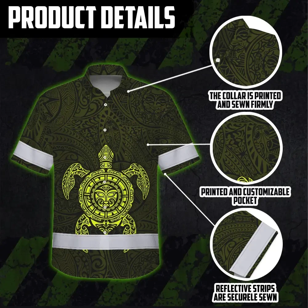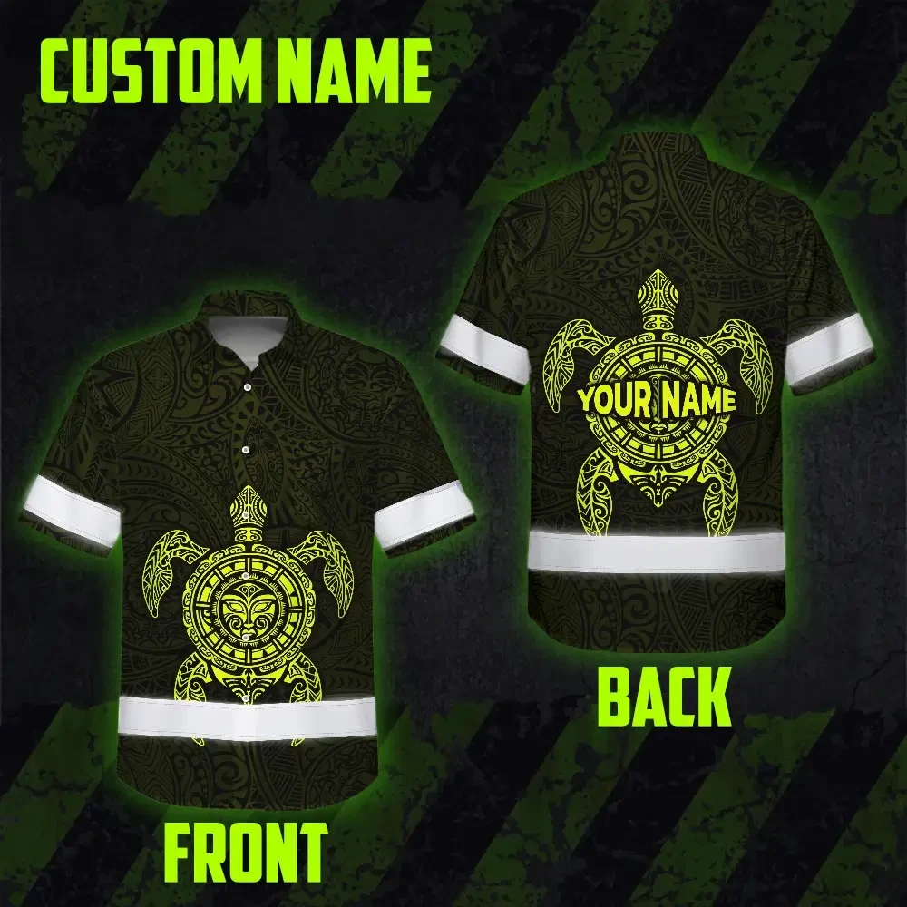 Hi Vis Hawaiian Shirt Reflective Tapes Lime Neon Hawaii Turtle Custom Name