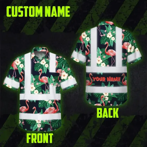 Be the first to review “Hi Vis Hawaiian Shirt Reflective Tapes Neon Pink Flowers 2 Custom Name”