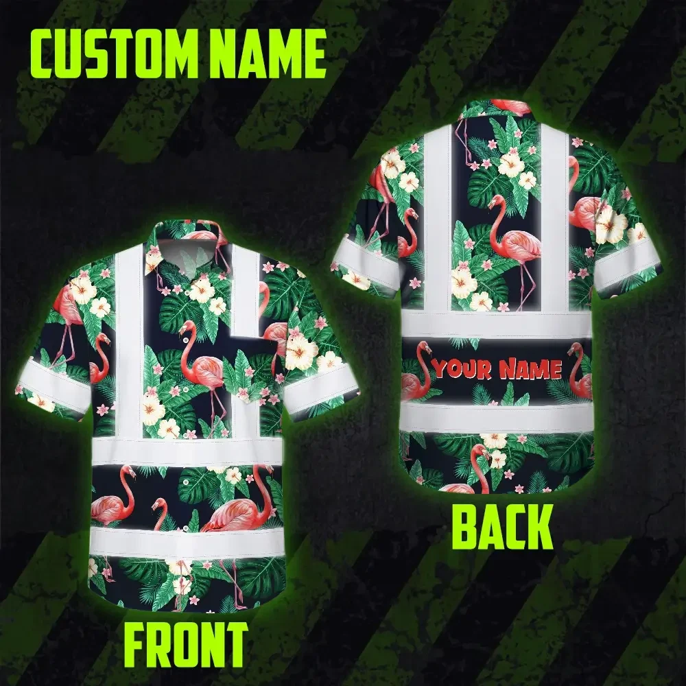 Hi Vis Hawaiian Shirt Reflective Tapes Neon Pink Flowers 2 Custom Name