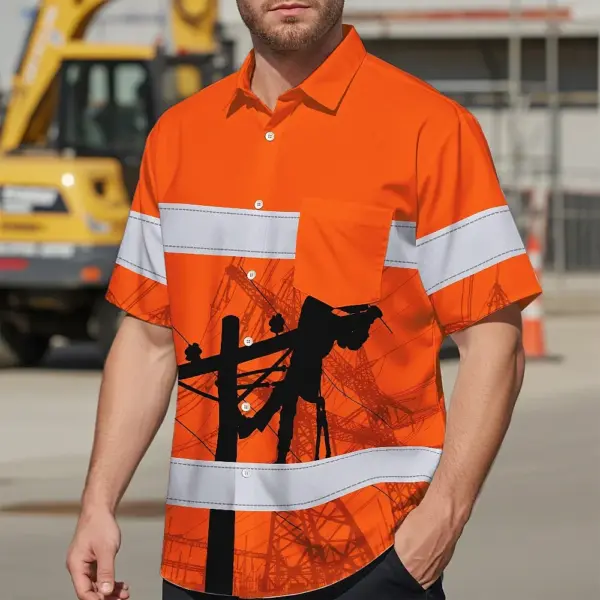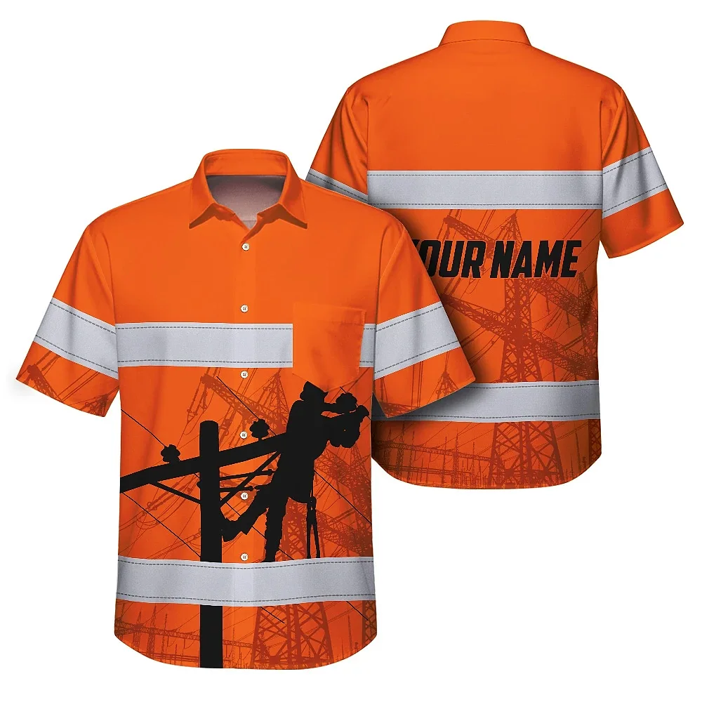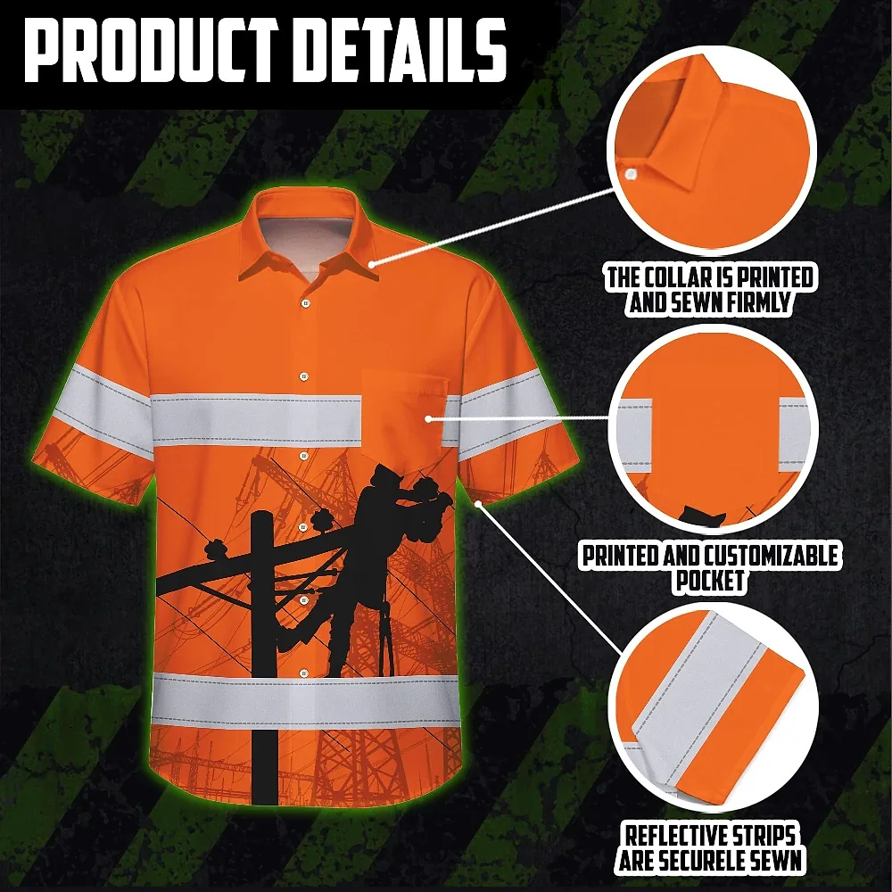 Be the first to review “Hi Vis Hawaiian Shirt Reflective Tapes Orange Lineman Custom Name Safety Workwear”