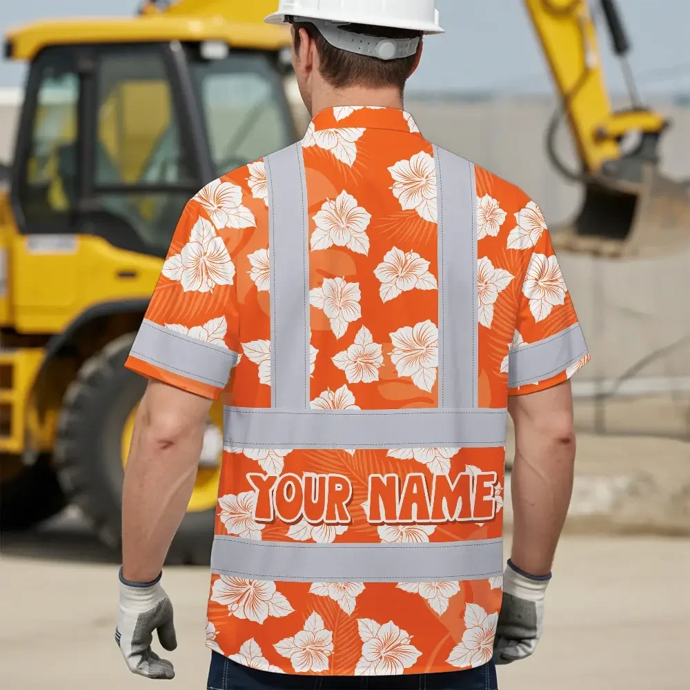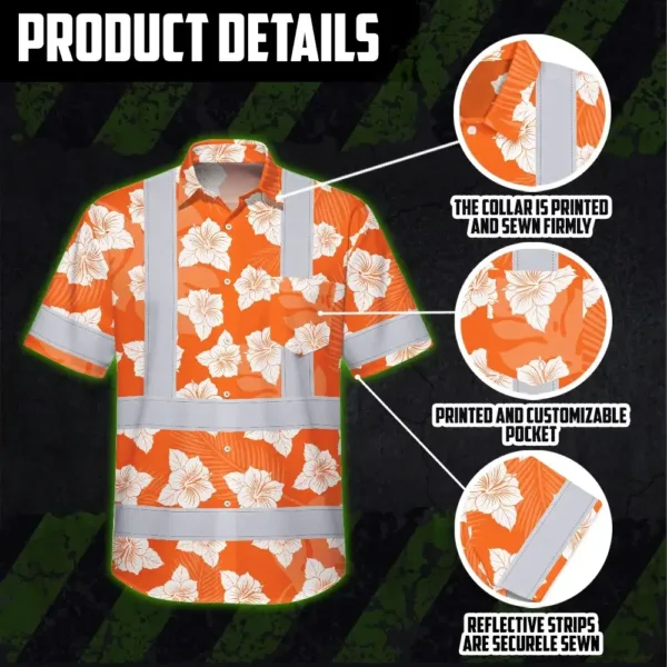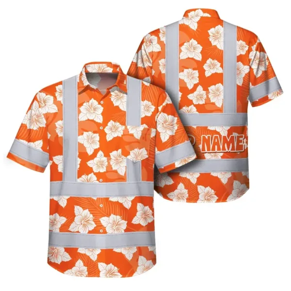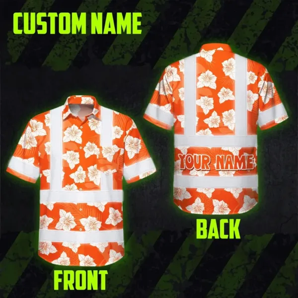 Hi Vis Hawaiian Shirt Reflective Tapes Orange Neon Flowers 2 Custom Name