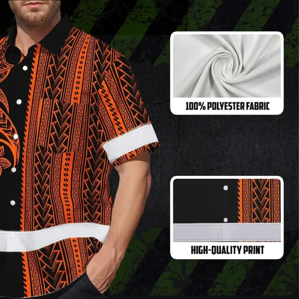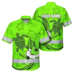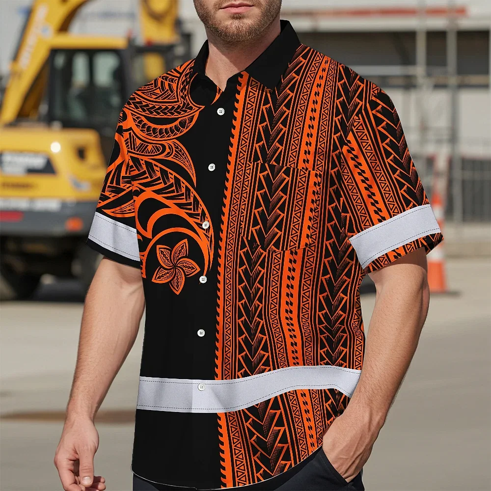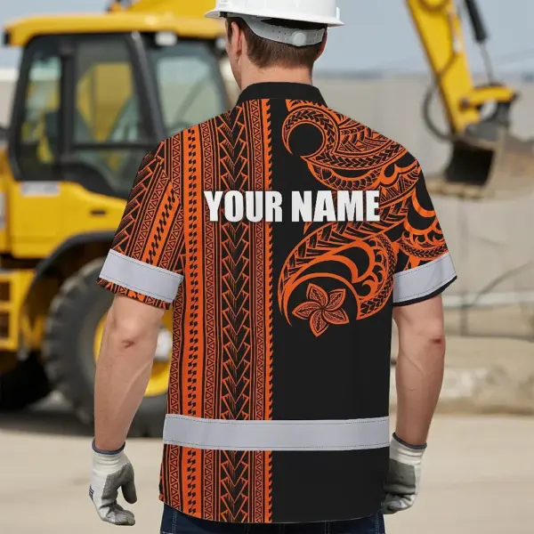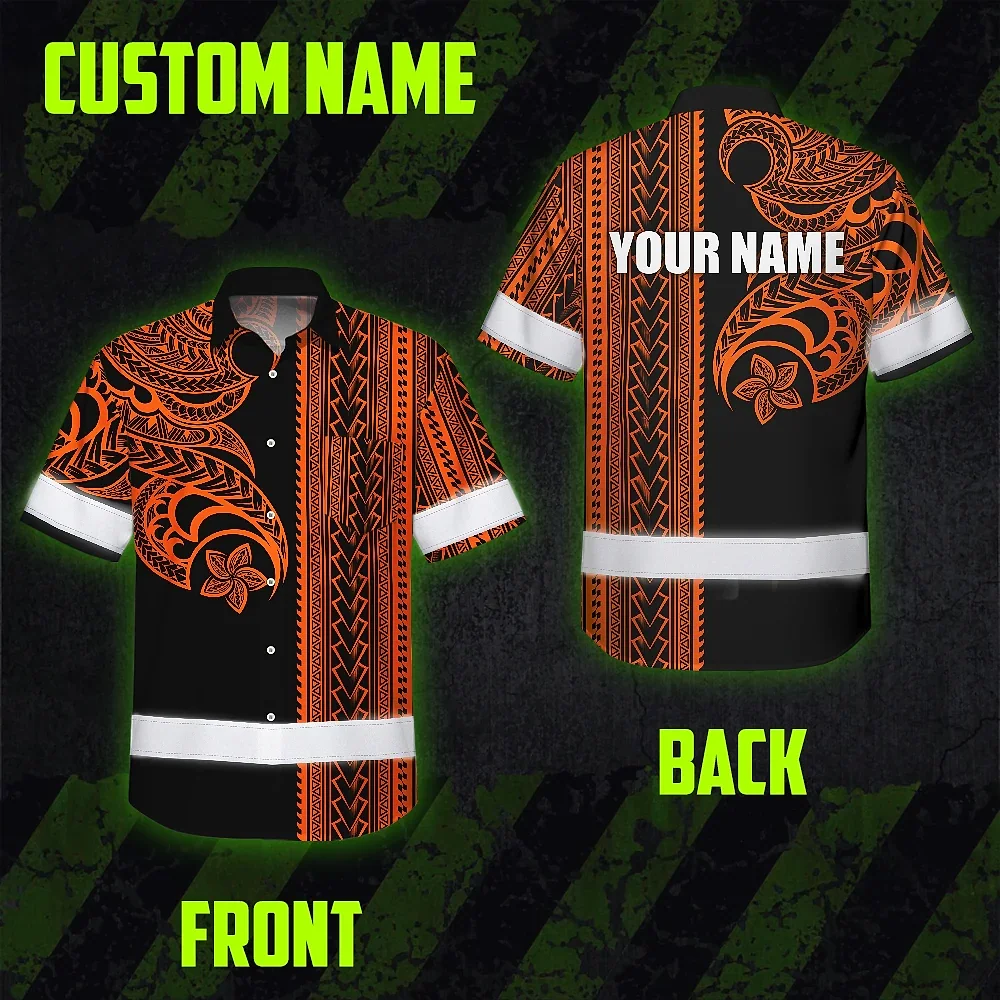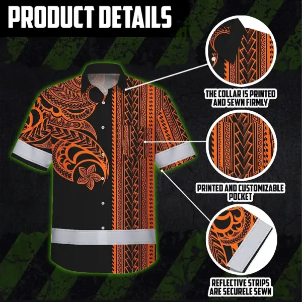 Hi Vis Hawaiian Shirt Reflective Tapes Orange Neon Polynesian Custom Name Safety Workwear For Workers, Truckers, Operators