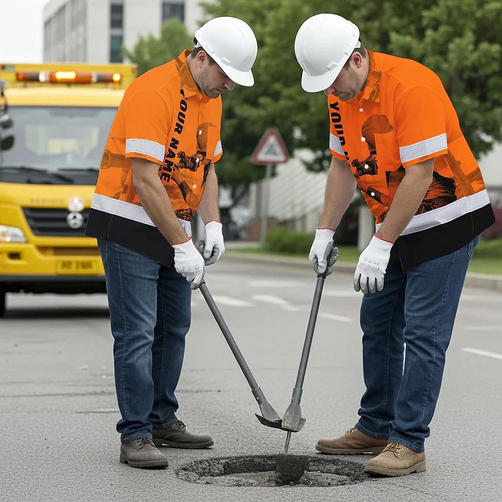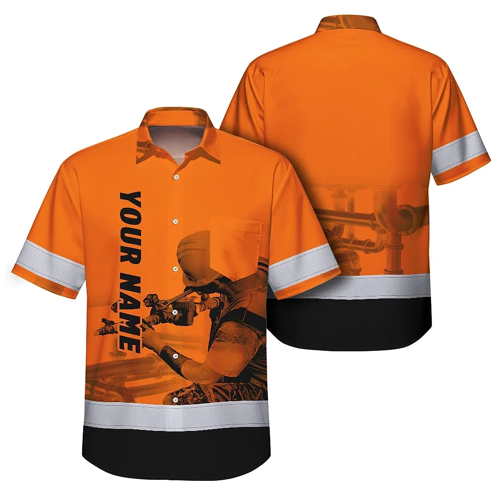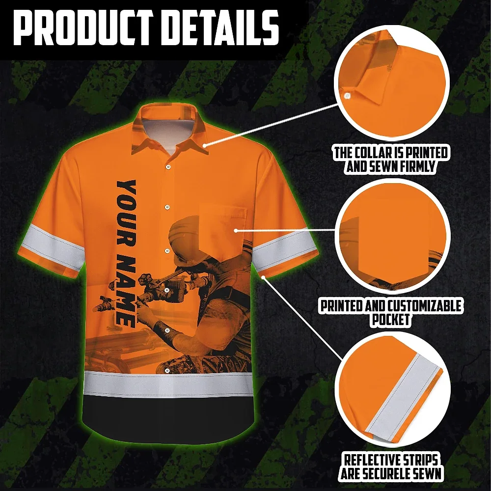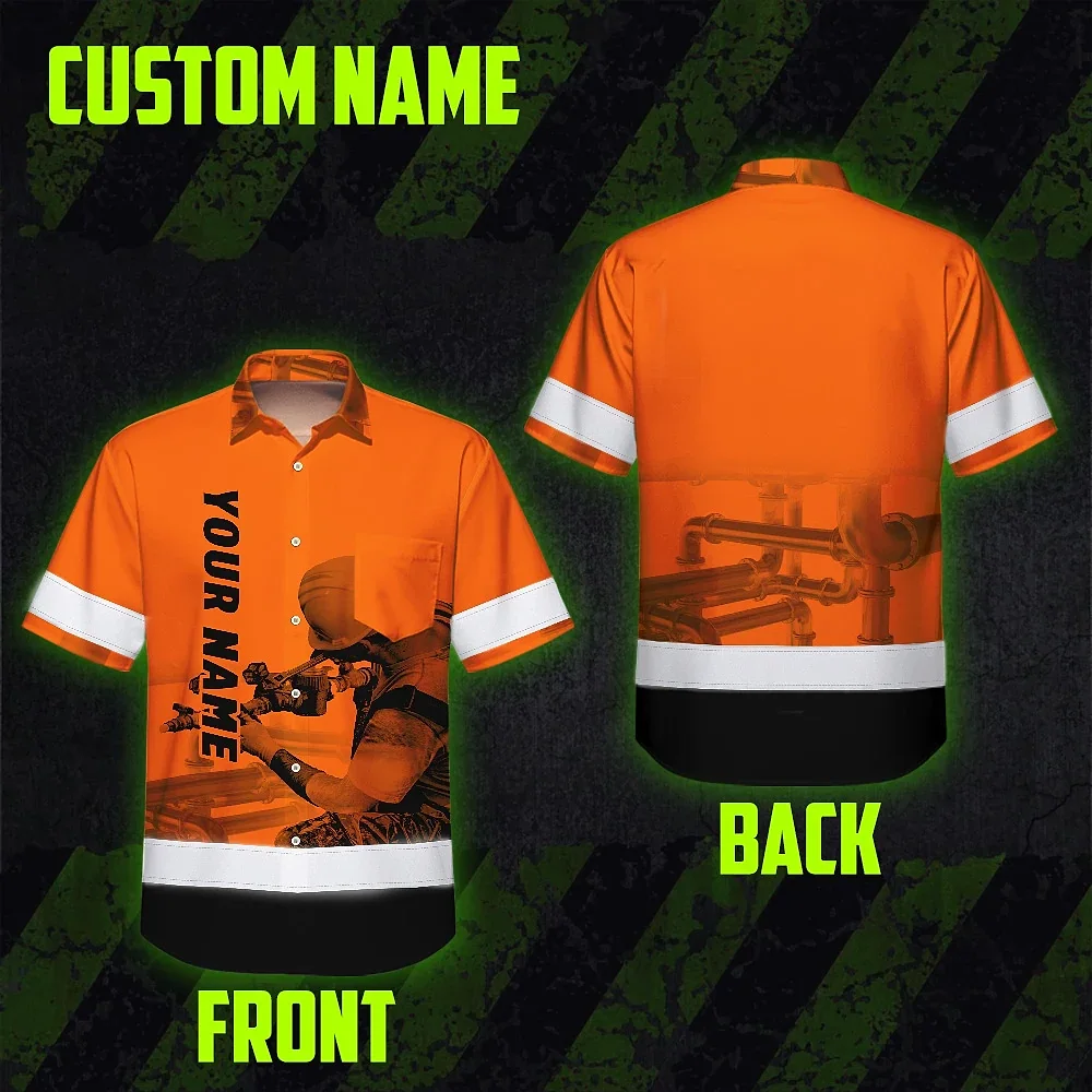 Hi Vis Hawaiian Shirt Reflective Tapes Orange Plumber Custom Name Safety Workwear