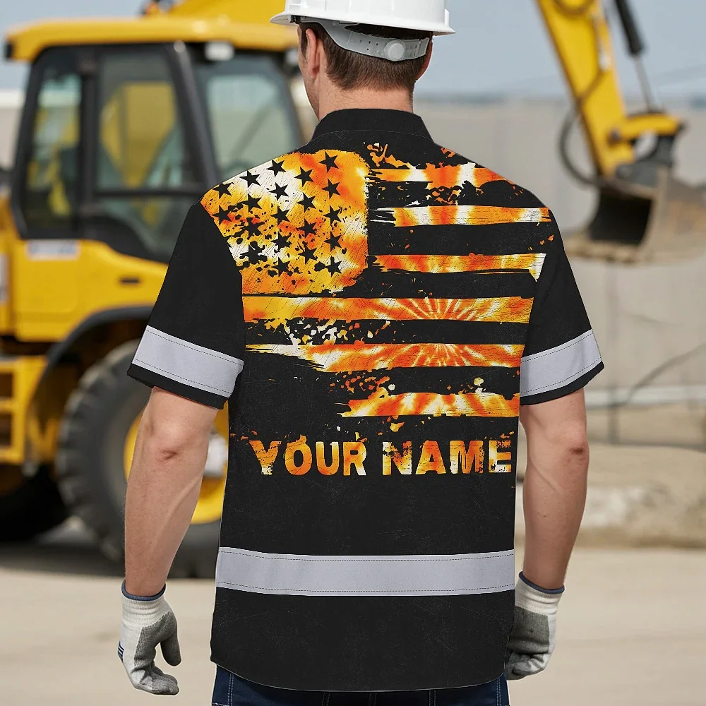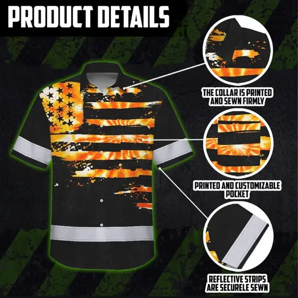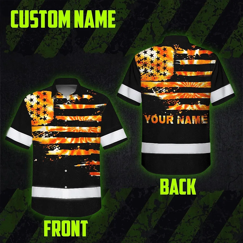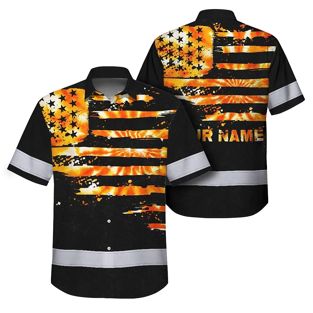 Hi Vis Hawaiian Shirt Reflective Tapes Orange Tie Dye US Flag Custom Name