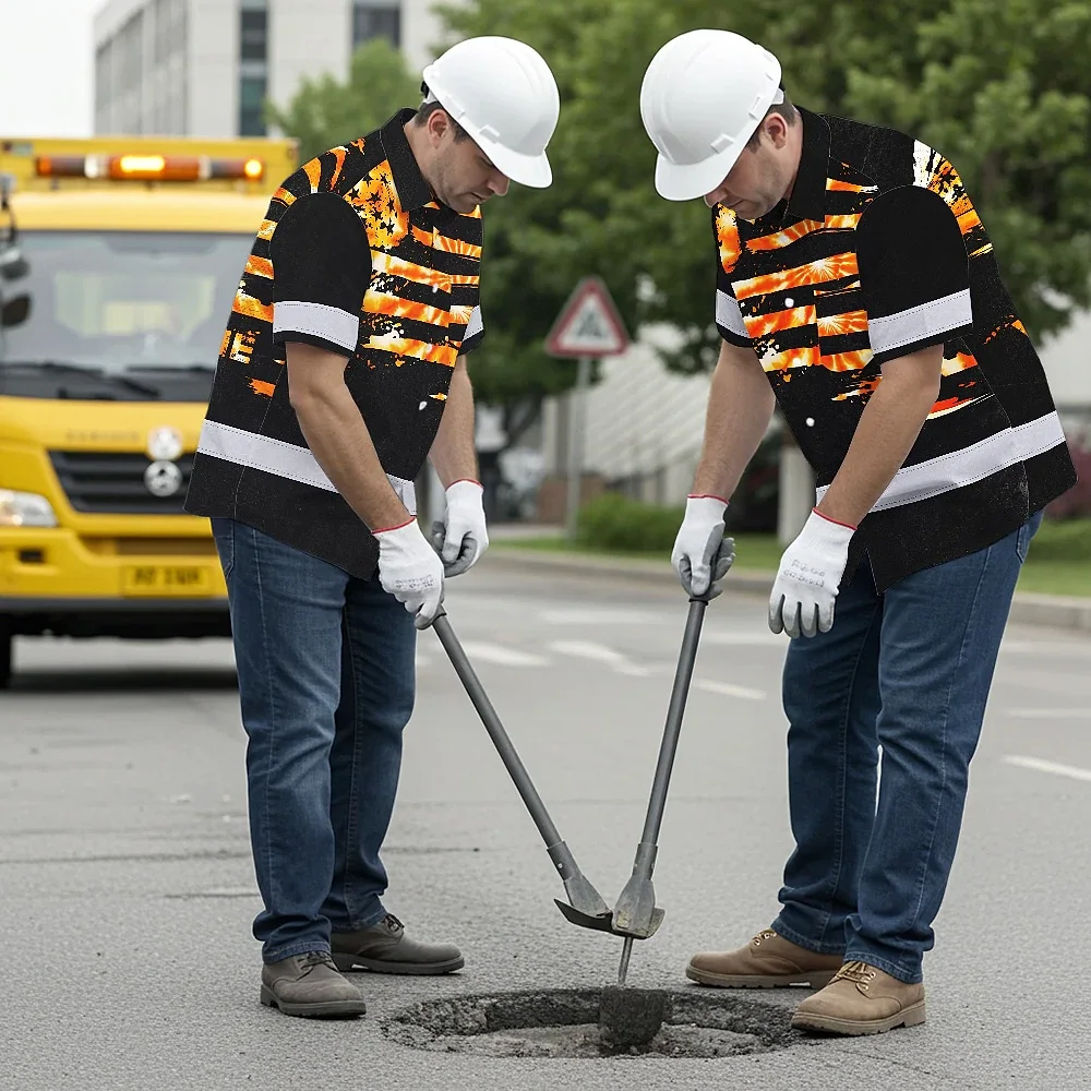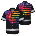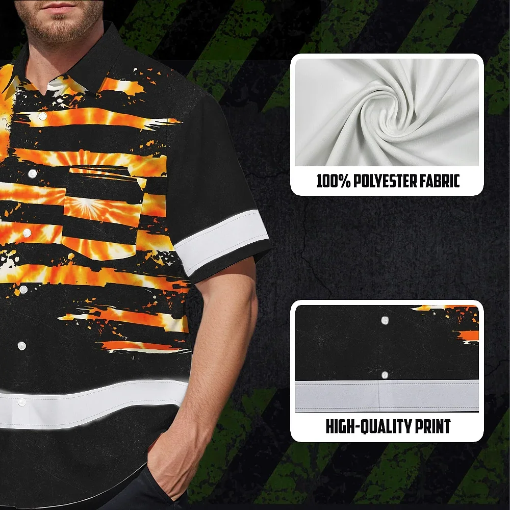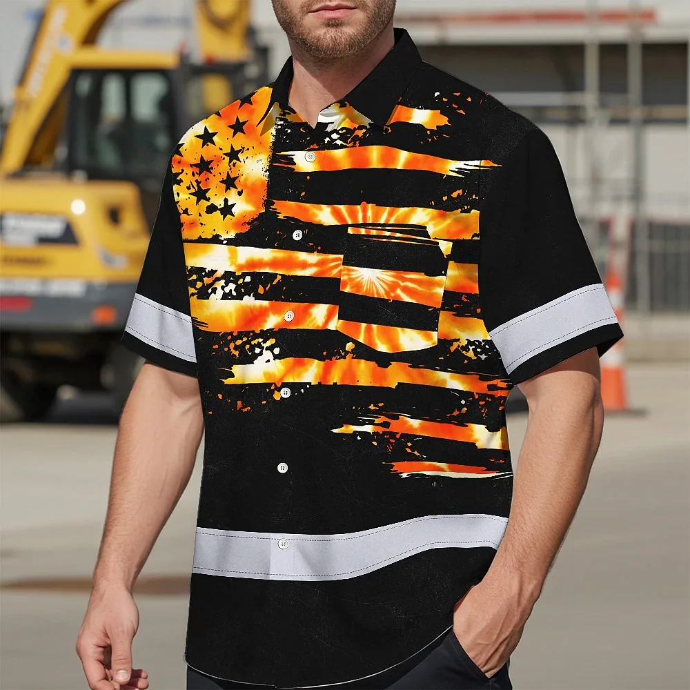 Hi Vis Hawaiian Shirt Reflective Tapes Orange Tie Dye US Flag Custom Name
