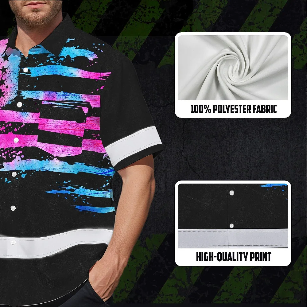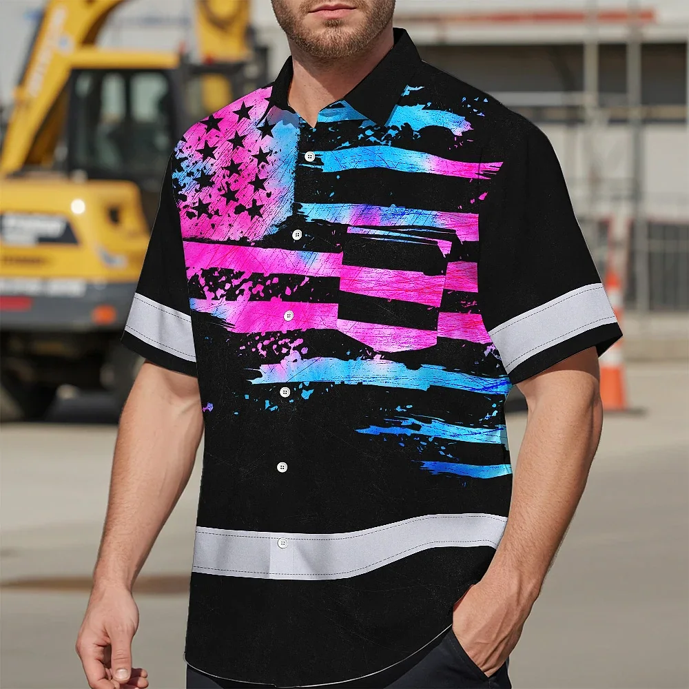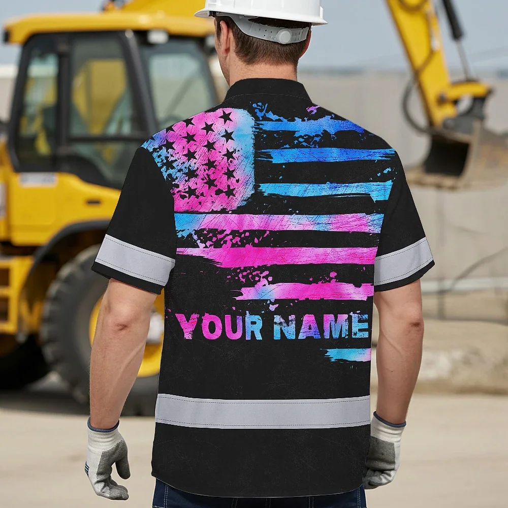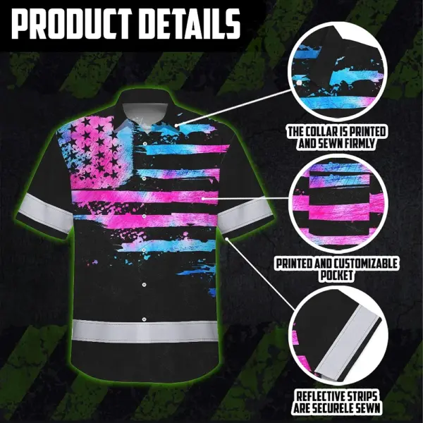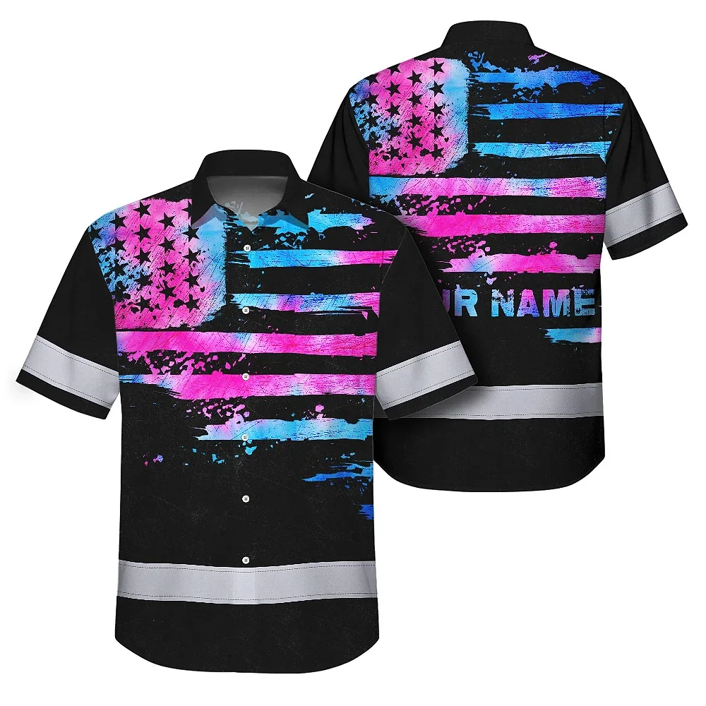 Hi Vis Hawaiian Shirt Reflective Tapes Pink Blue Tie Dye US Flag Custom Name