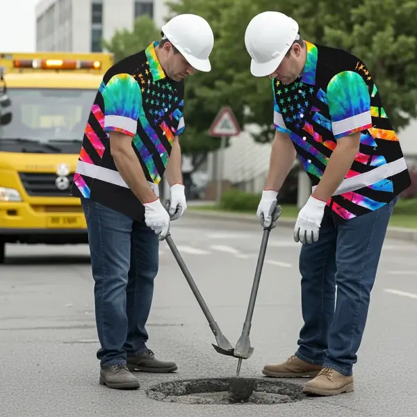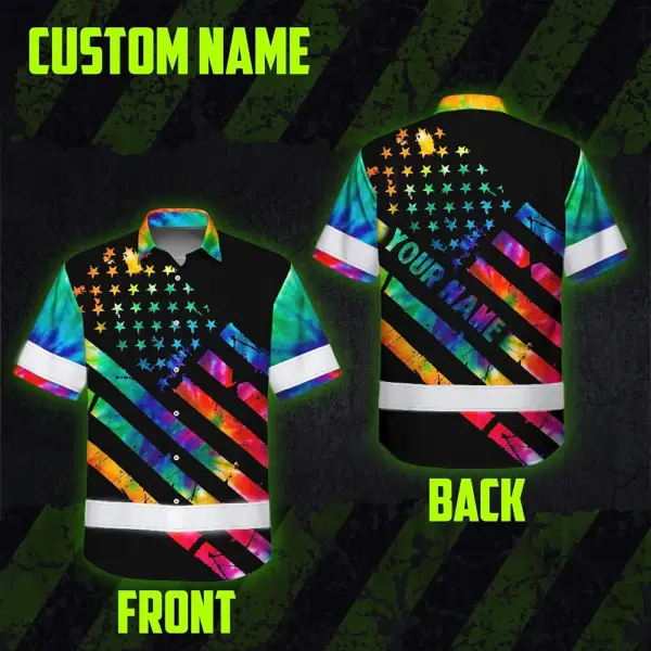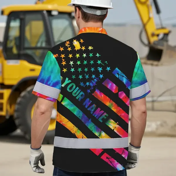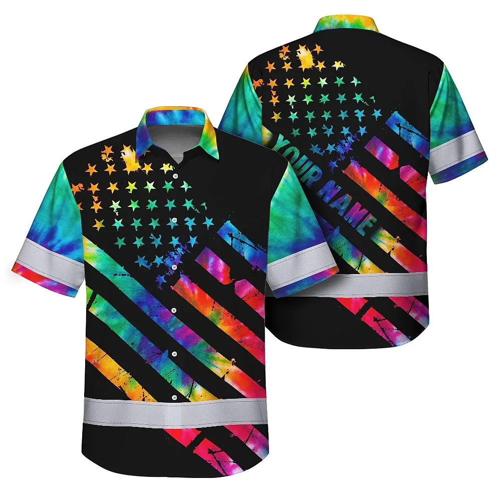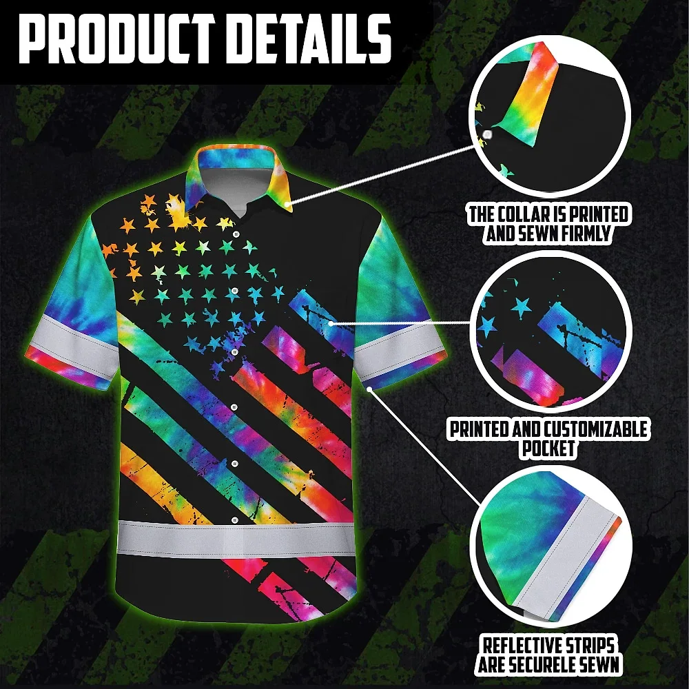 Hi Vis Hawaiian Shirt Reflective Tapes Rainbow Tie Dye Safety Workwear