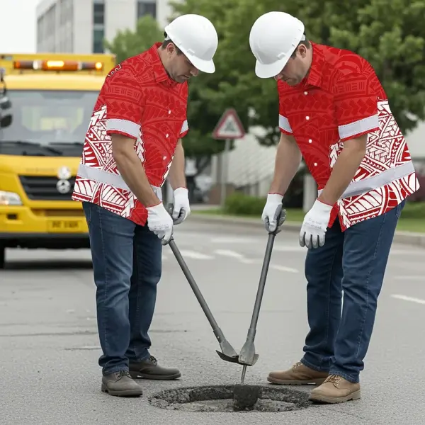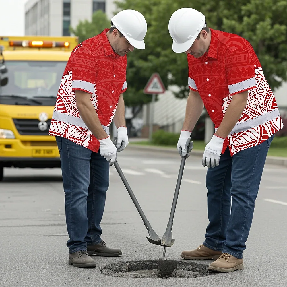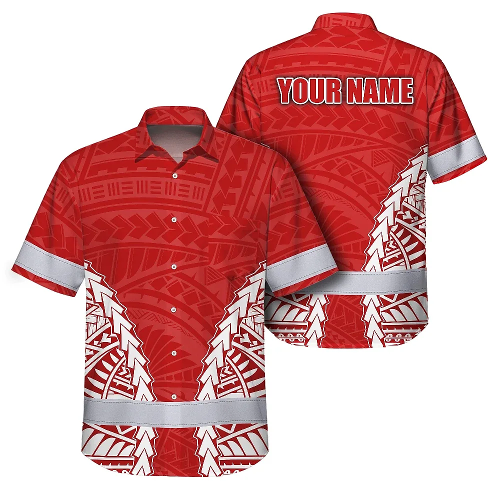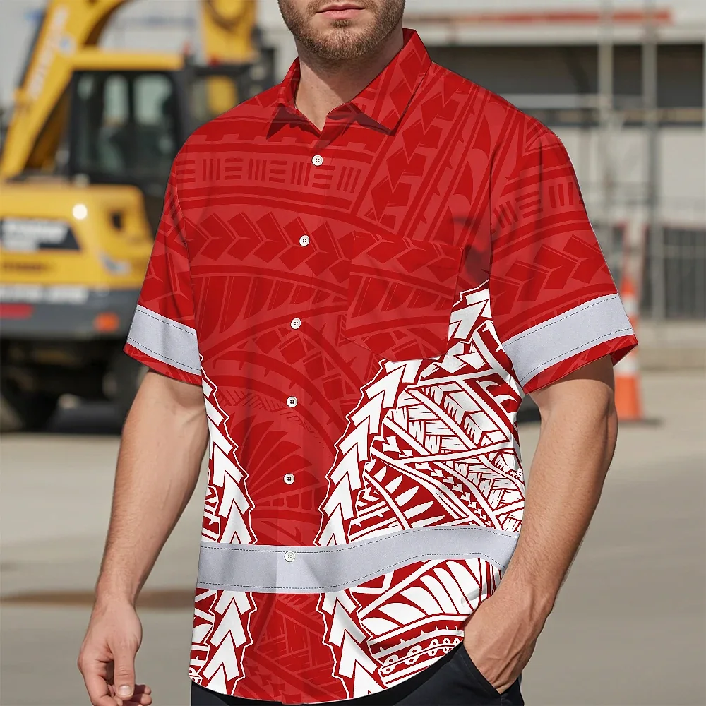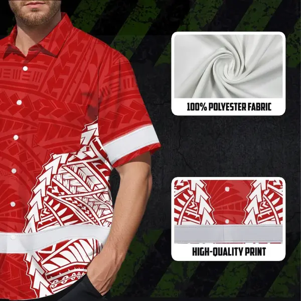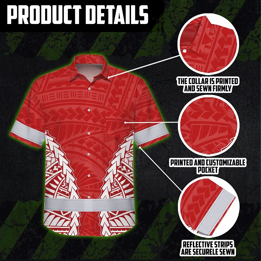 Hi Vis Hawaiian Shirt Reflective Tapes Red White Polynesian Custom Name Safety Workwear For Workers, Truckers, Operators