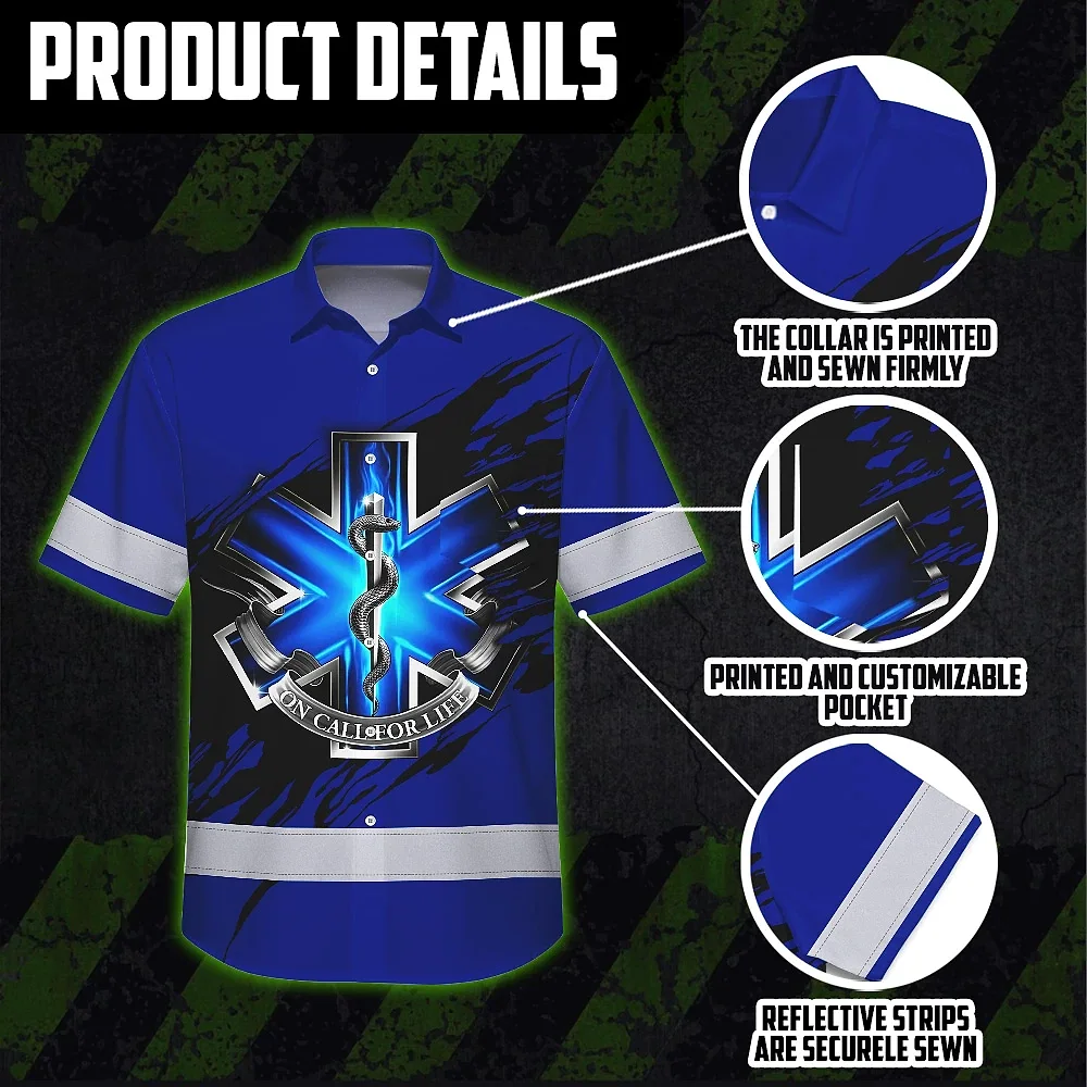 Hi Vis Hawaiian Shirt Reflective Tapes Scratch On Call For Life Custom Name Safety Workwear