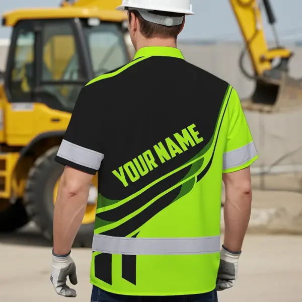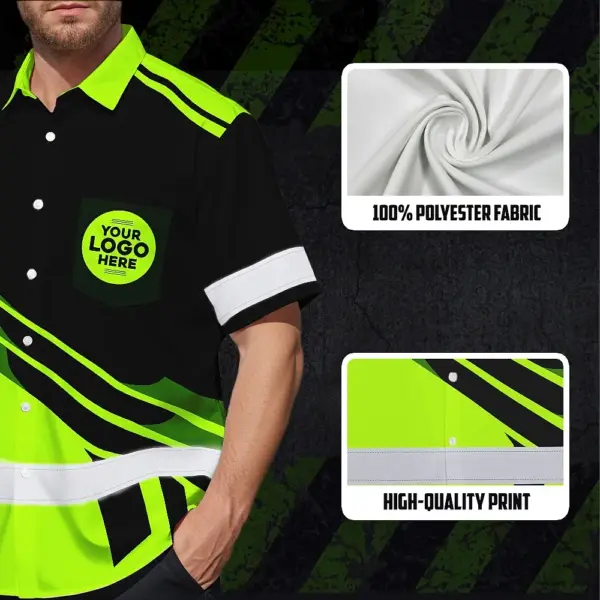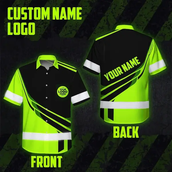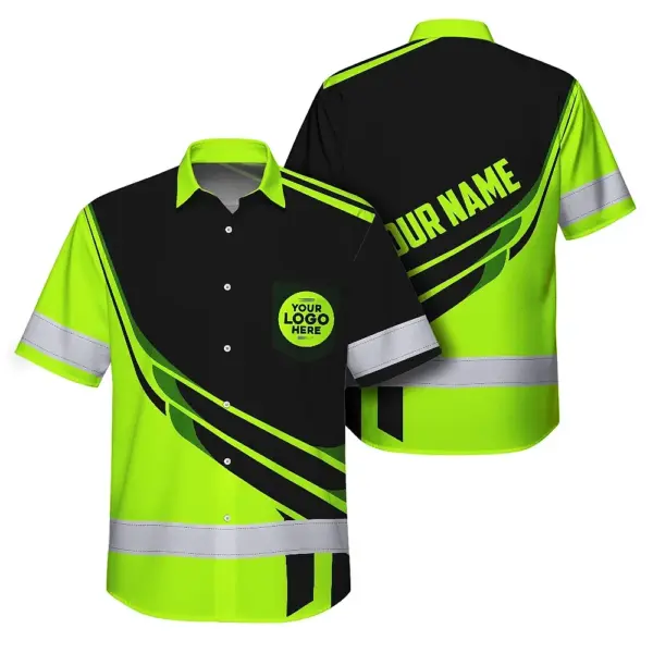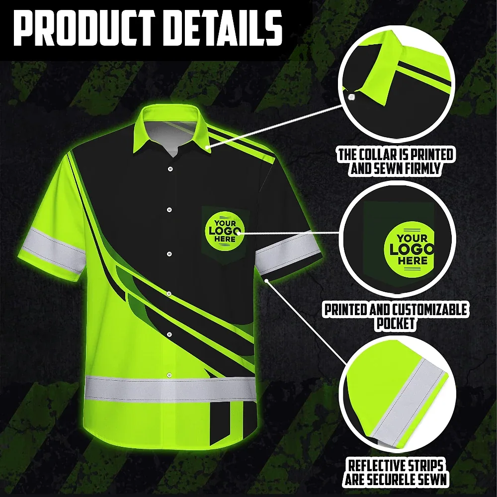 Hi Vis Hawaiian Shirt Reflective Tapes Uniform Green Neon 2 Custom Logo And Name