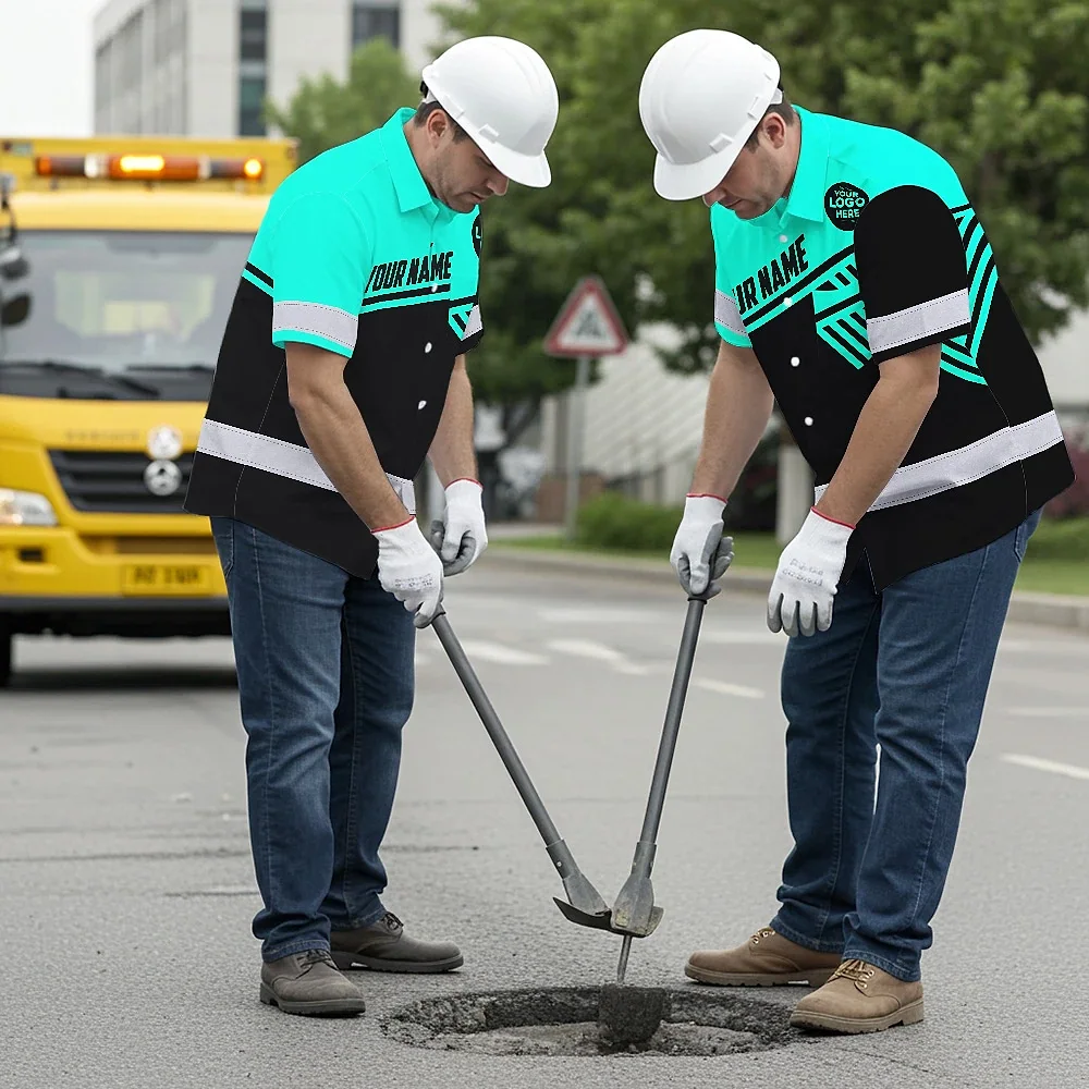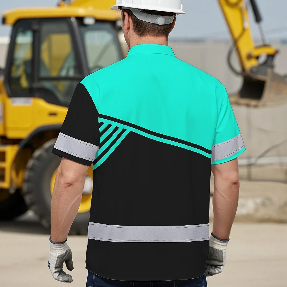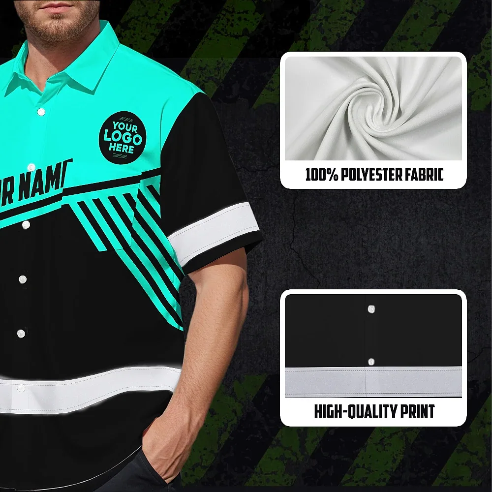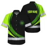 Hi Vis Hawaiian Shirt Reflective Tapes Uniform Mint Neon Custom Logo And Name