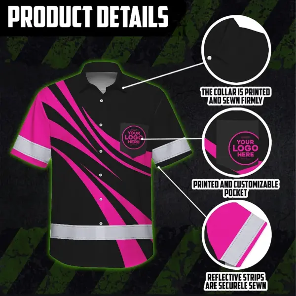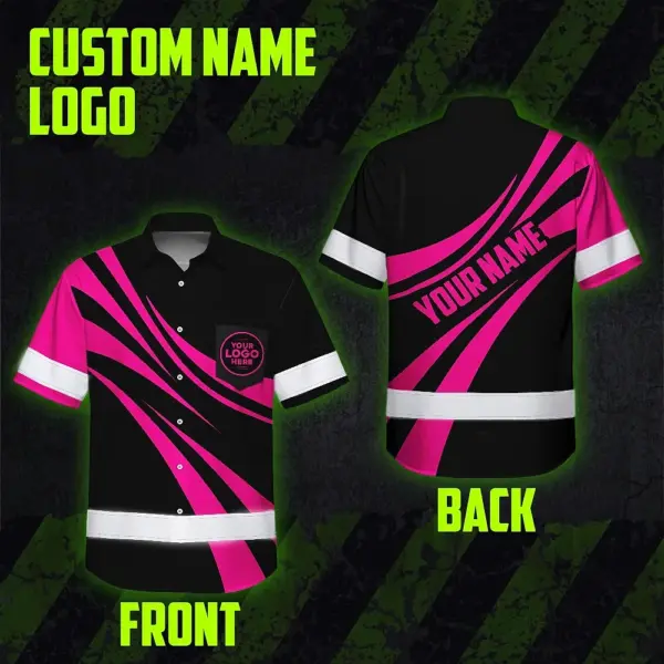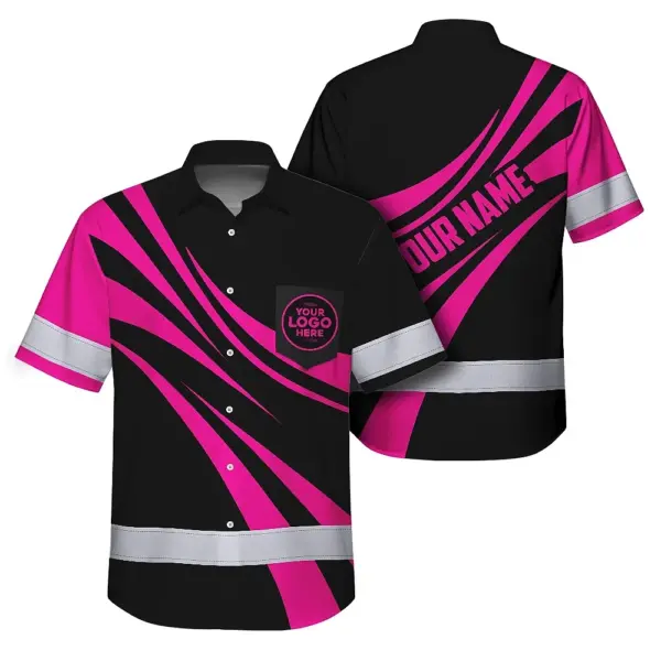• Hi Vis Hawaiian Shirt Reflective Tapes Uniform Pink Neon Black Custom Name And Logo