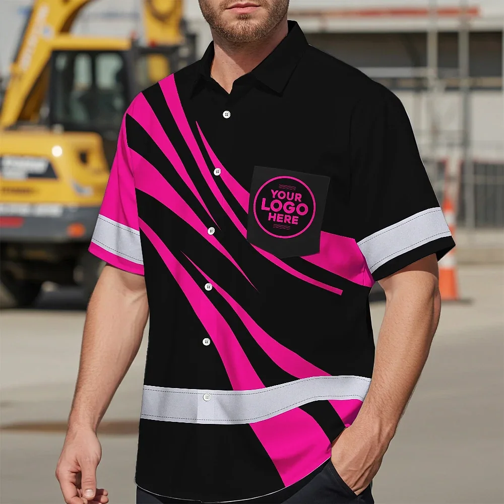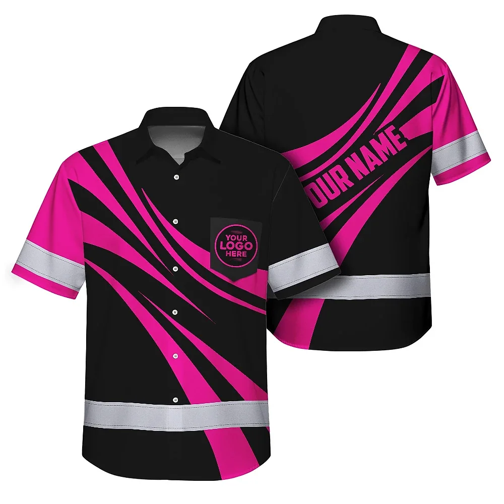 Hi Vis Hawaiian Shirt Reflective Tapes Uniform Pink Neon Black Custom Name And Logo