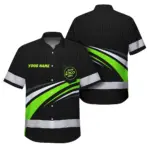 • Hi Vis Hawaiian Shirt Uniform Reflective Black Green Neon Color Custom Name And Logo
