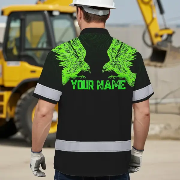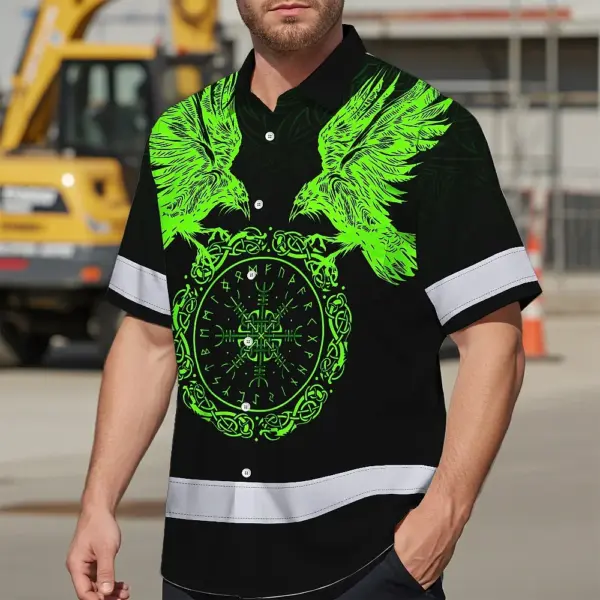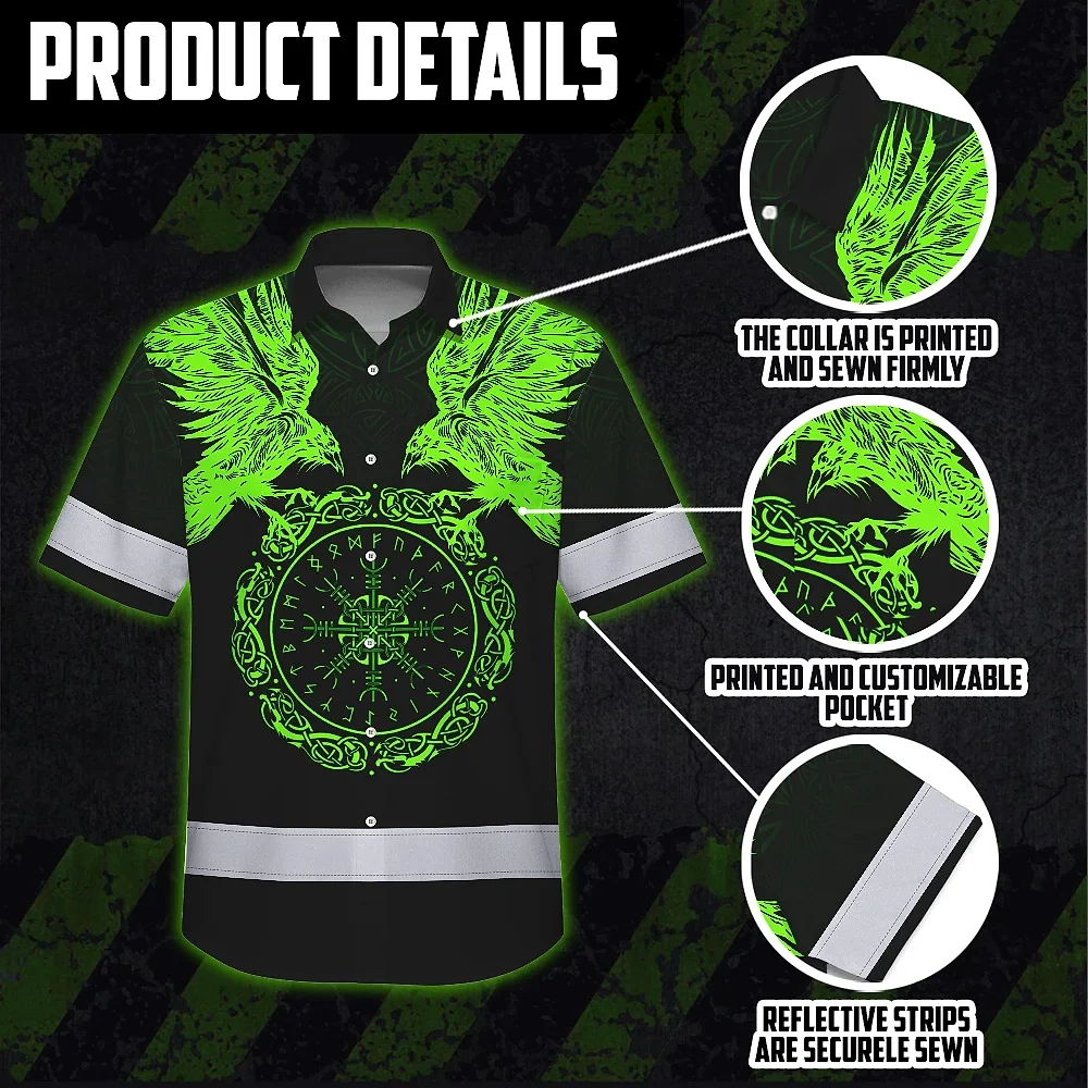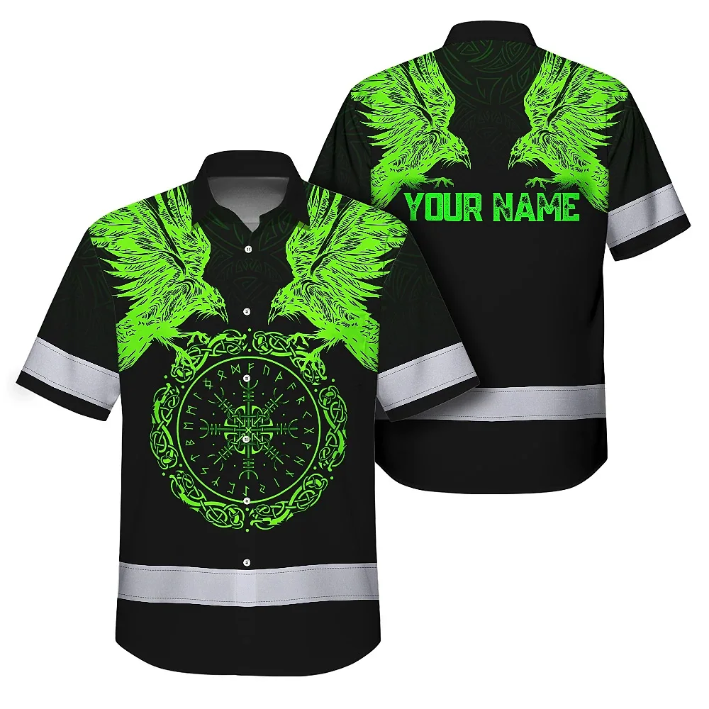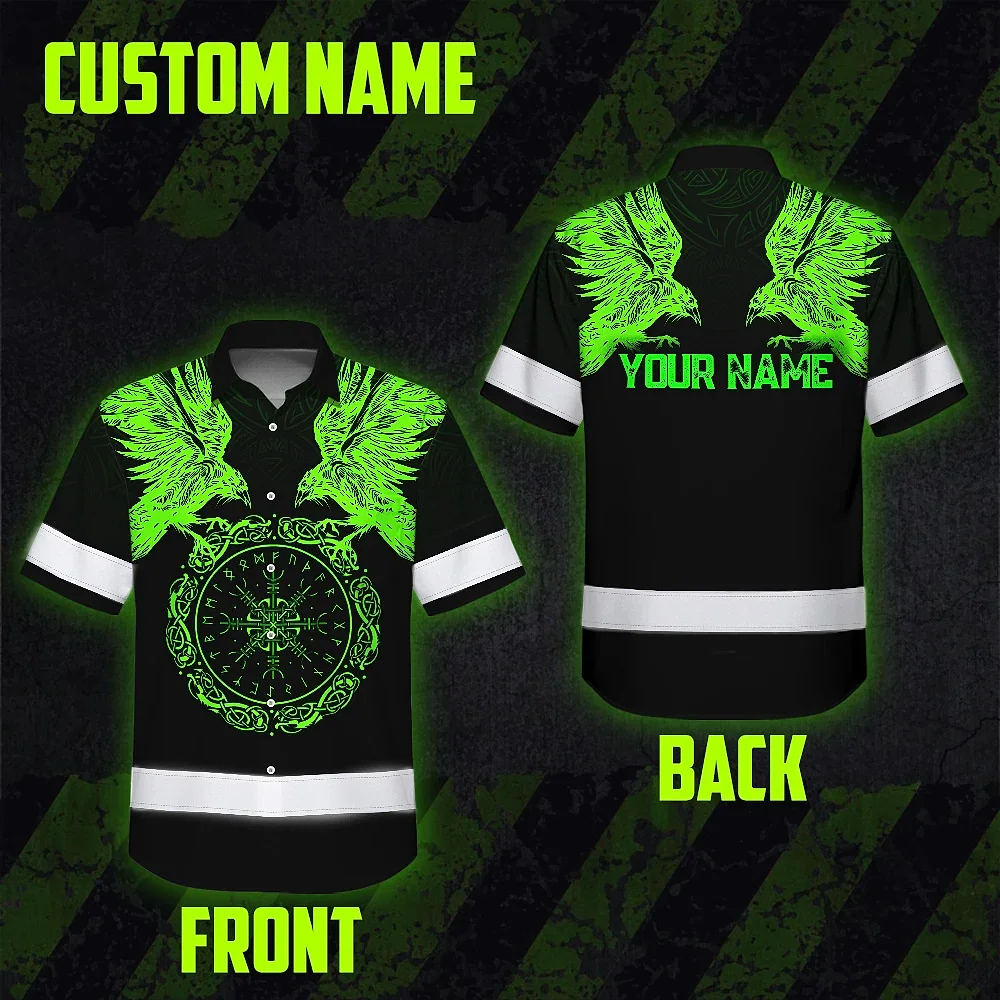 Hi Vis Hawaiian Shirt Reflective Viking Symbol Custom Name For Workers, Truckers, Skull Lovers