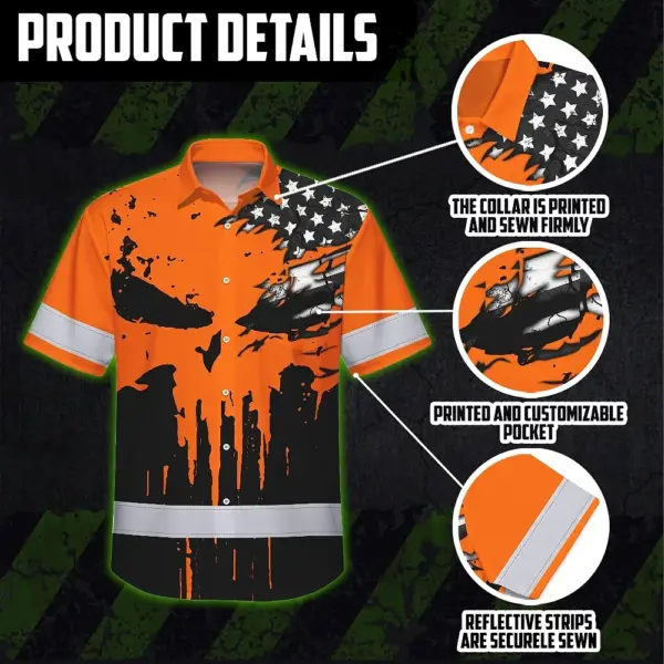 Select options This product has multiple variants. The options may be chosen on the product pageHi Vis Shirt Reflective Skull With US Flag Custom Name Safety Workwear For Skull Lover