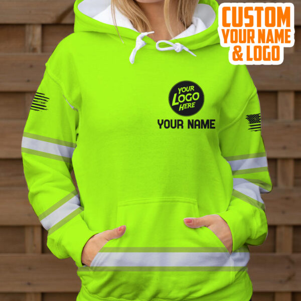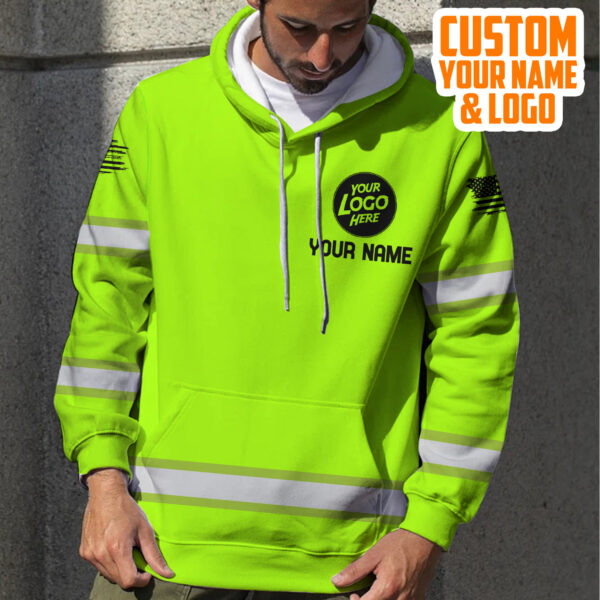 High Visibility Hoodie Reflective Camo Orange Neon Scratch US Flag Custom Name Safety Workwear