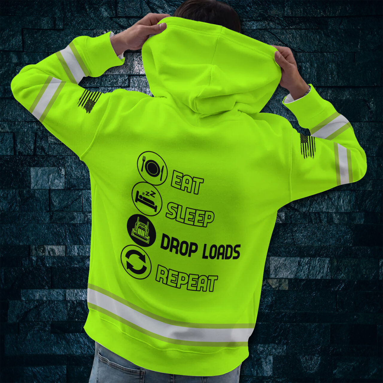 Hi Vis Hoodie Eat Sleep Drop Loads Custom Name and Logo Company Name Safety Workwear